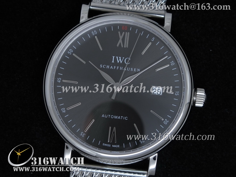 高仿万国IWC 柏涛菲诺系列 IW356506 黑色表盘 不锈钢表链 亚洲2892机芯 IWC0051