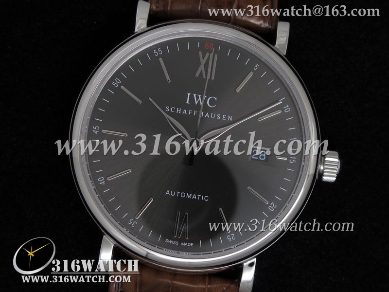 高仿万国IWC-柏涛菲诺系列 IW356502 黑色表盘 棕色鳄鱼皮带 亚洲2892机芯 IWC0021