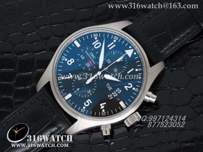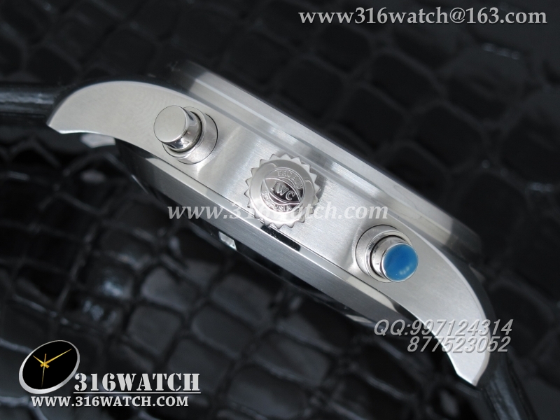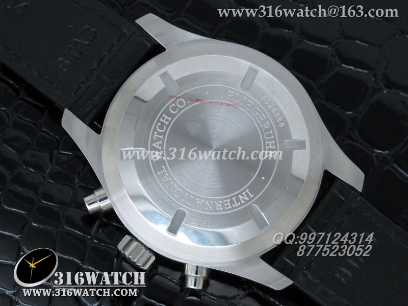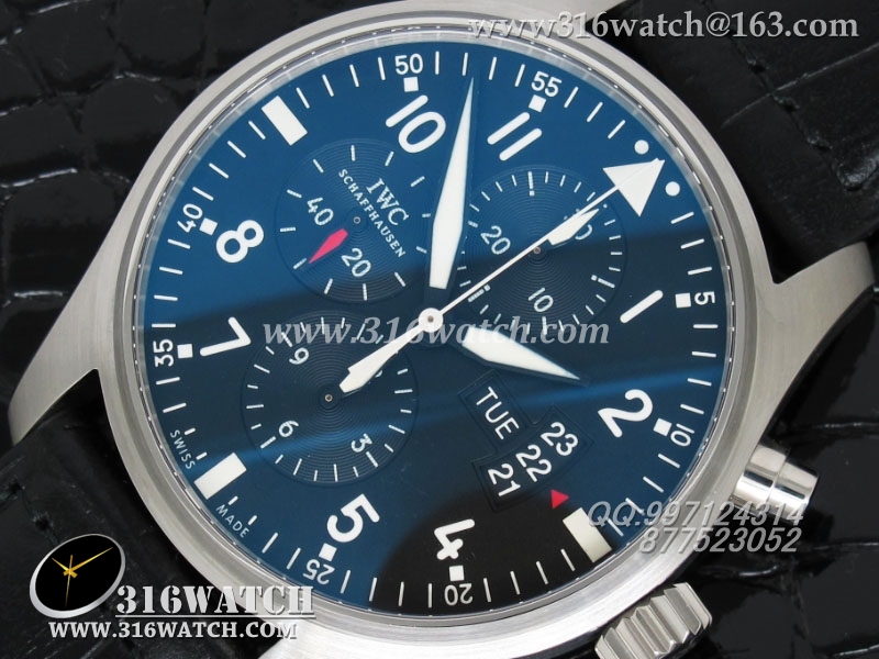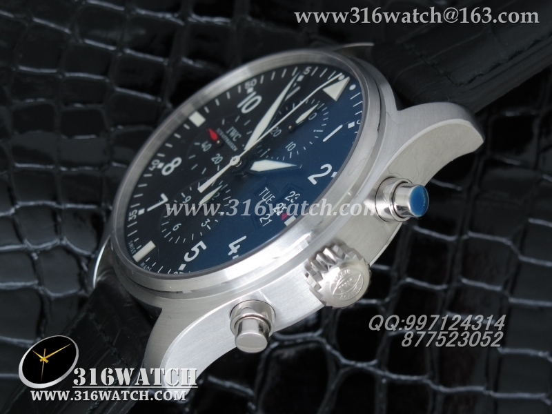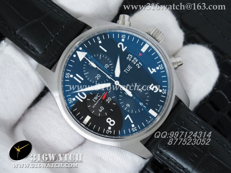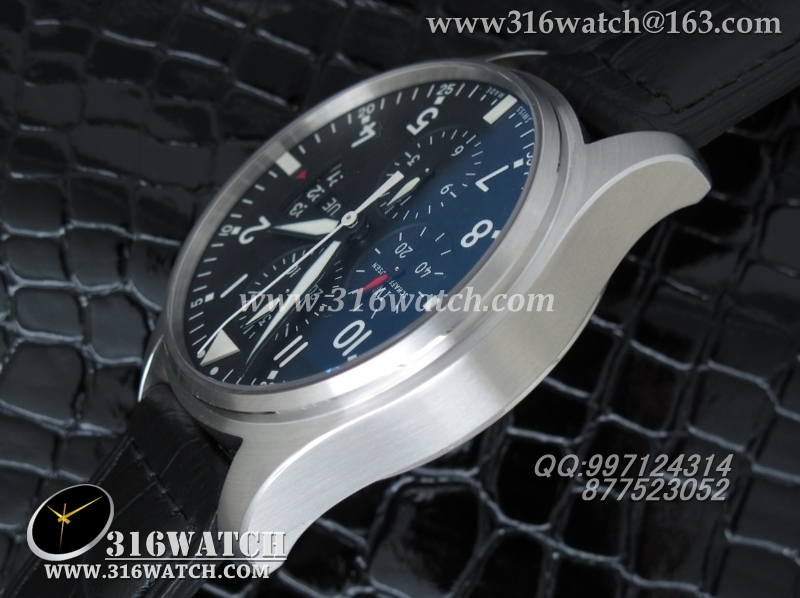 万国IWC -飞行员系列 3777皮带款 43mm 1:1 黑面白数字表盘 仿瑞士ETA-7750全自动上链计时机芯 IWC0105