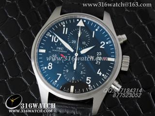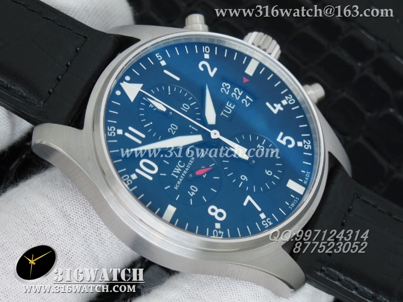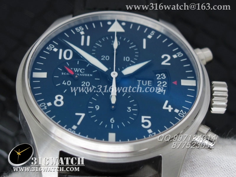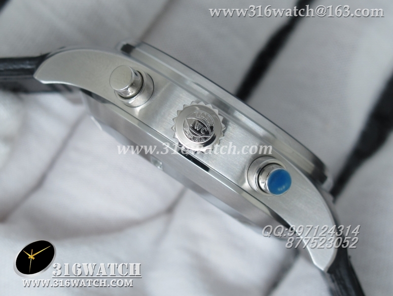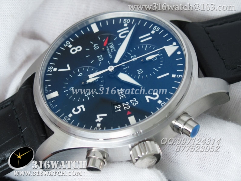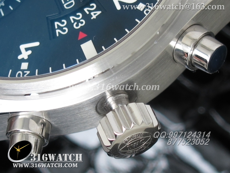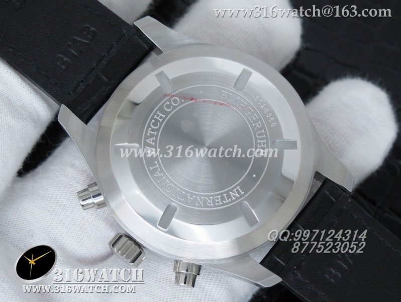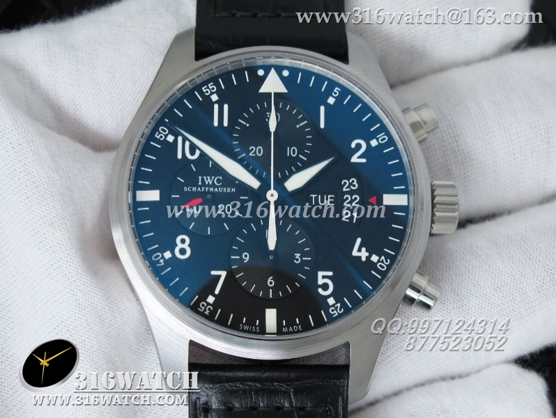 万国IWC -飞行员系列 3777皮带款 43mm 1:1 黑面白数字表盘 仿瑞士ETA-7750全自动上链计时机芯 IWC0105
