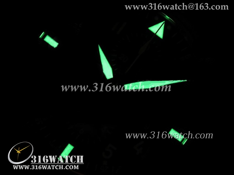 黑色表盘,白色阿拉伯数字(Lume棒)标记 超级夜光