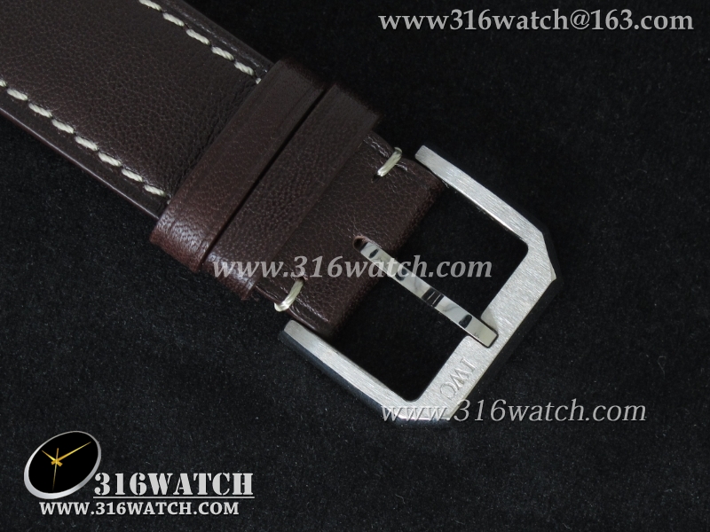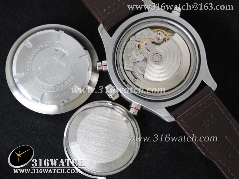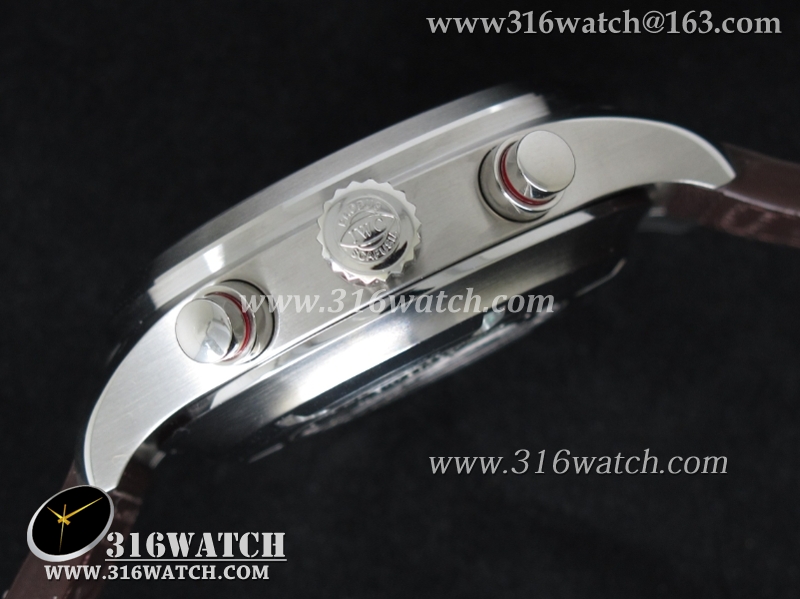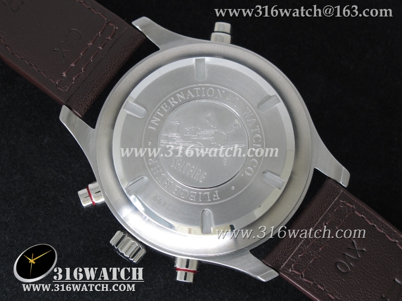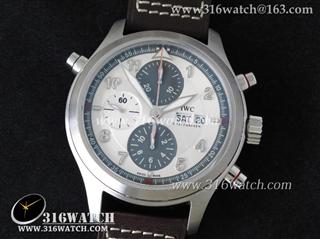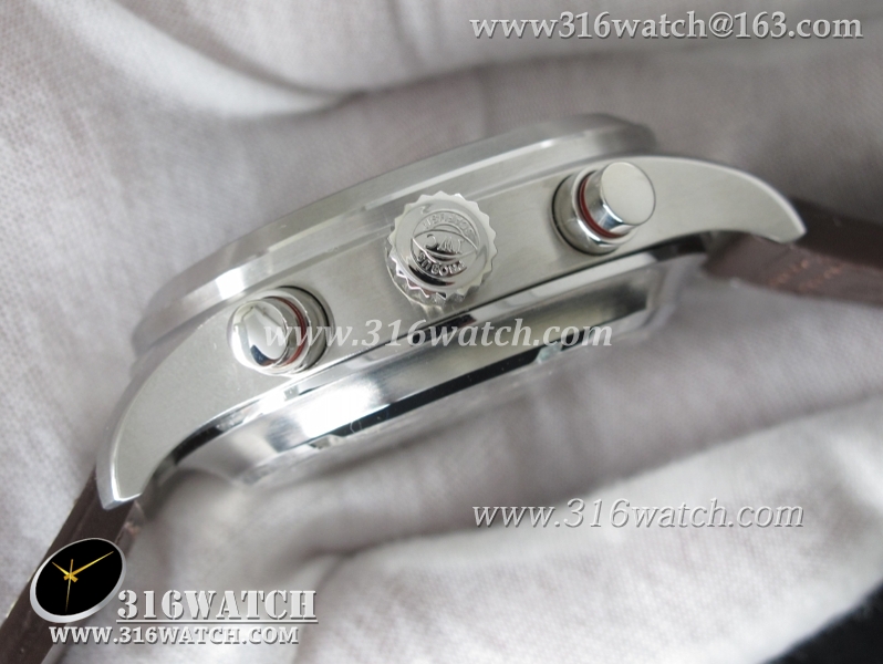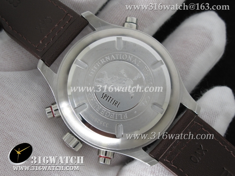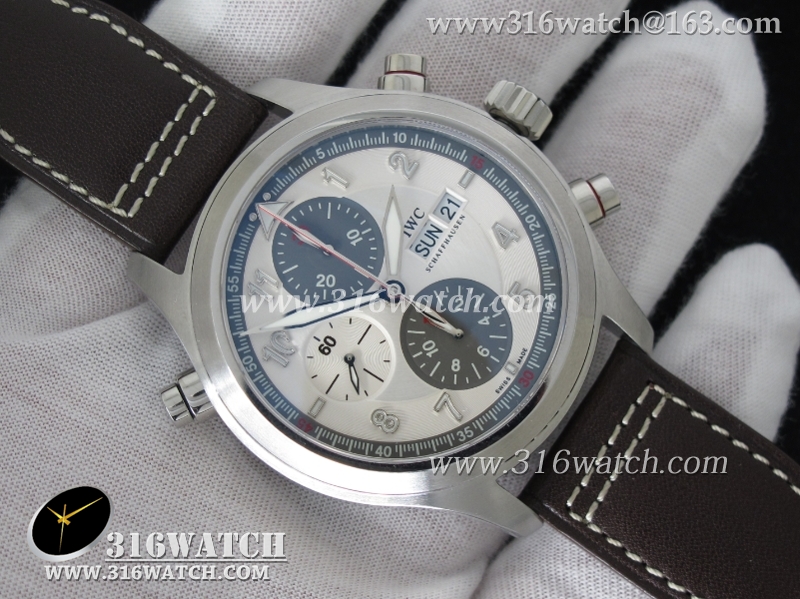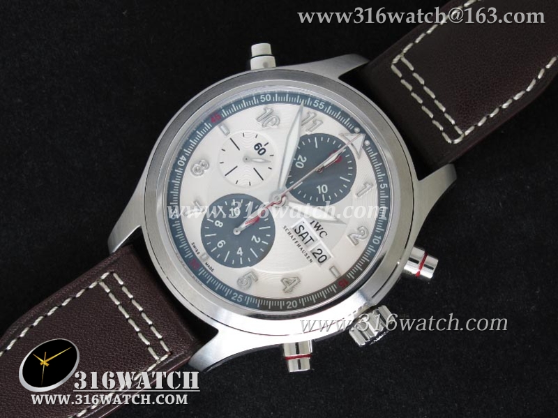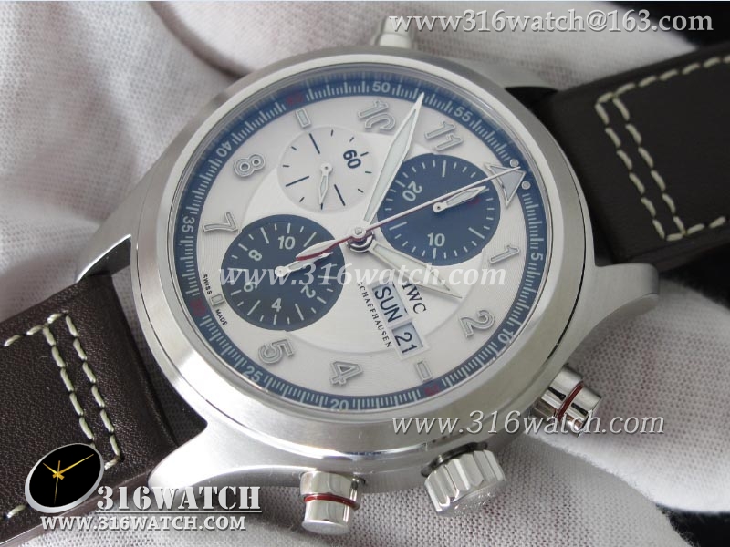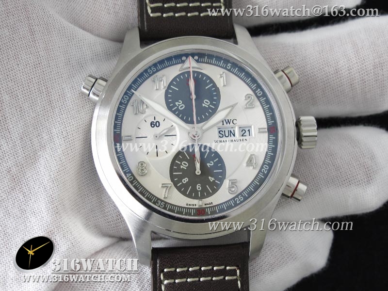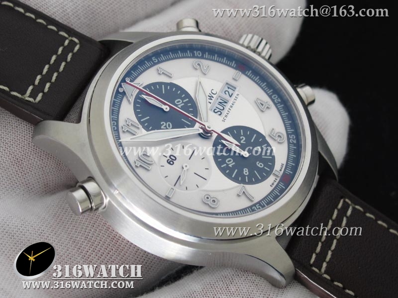 1:1高仿万国IWC-飞行员系列 喷火战机追针计时 Spitfire Double 371806 不锈钢表壳 白色表盘 棕色牛皮表带 亚洲7750自动上链机芯 IWC0099