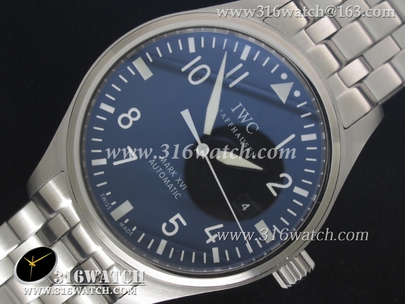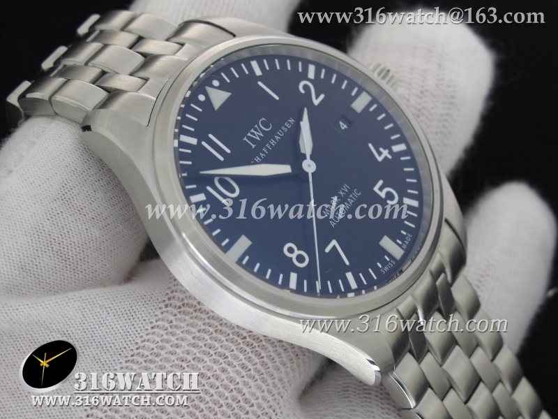 万国IWC 飞行员系列 马克十六 钢带款 黑色表盘 高仿1:1万国手表IWC0092