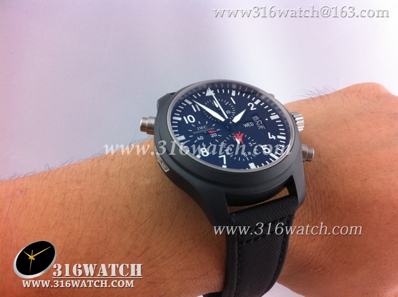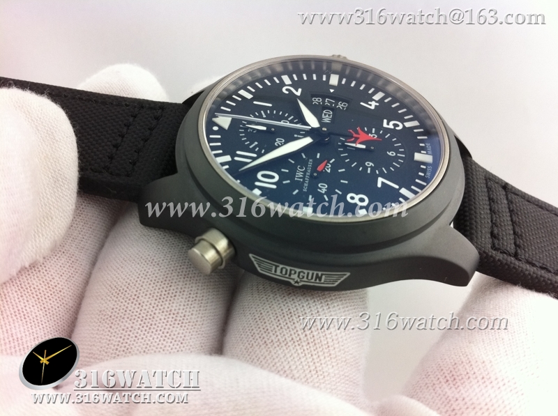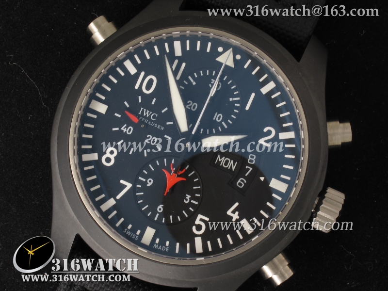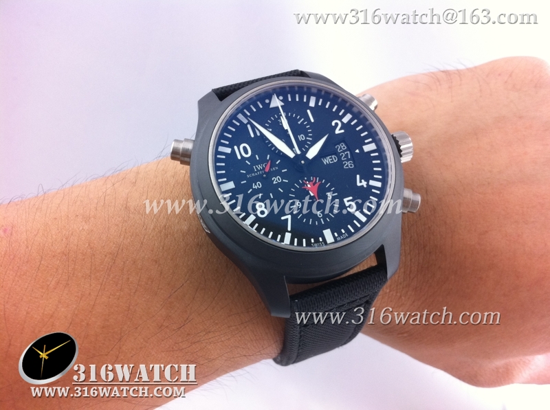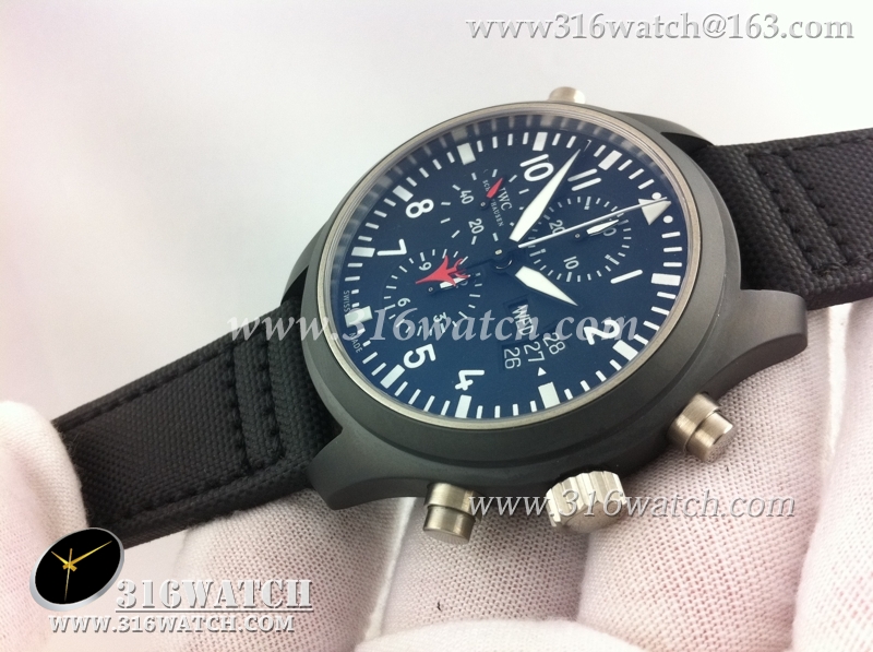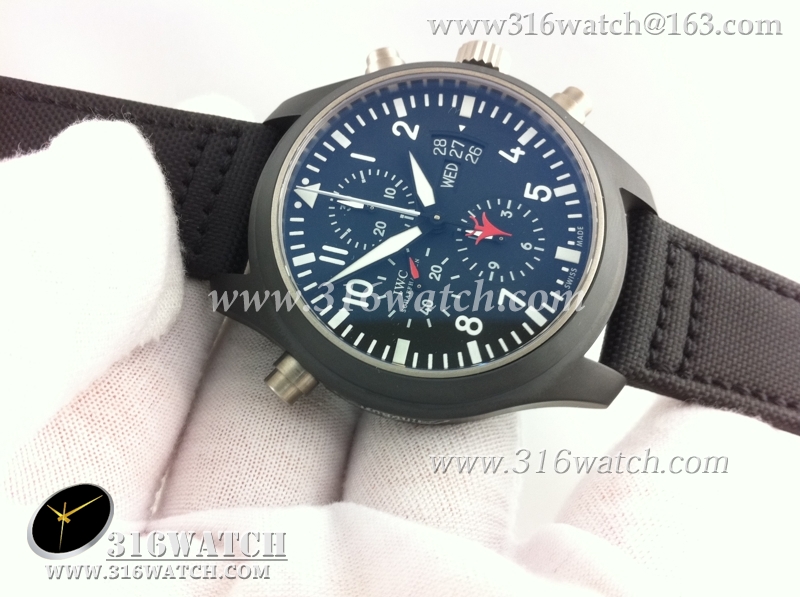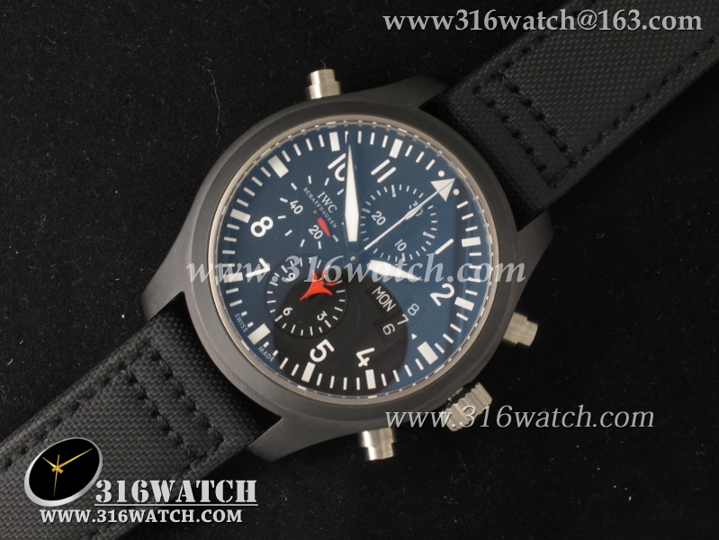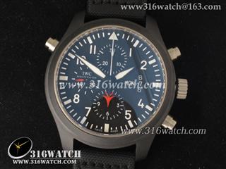 万国IWC-飞行员系列 壮志凌云379901全陶瓷V1版 黑色表盘 黑色编织表带 计时7750机械表 高仿万国 完美1:1复制版 IWC0067
