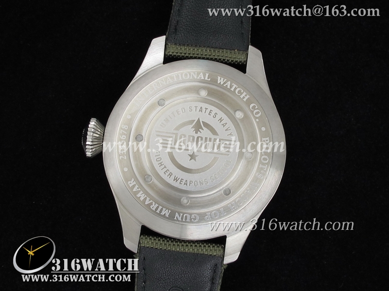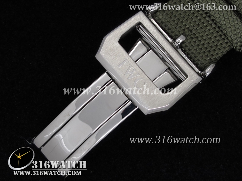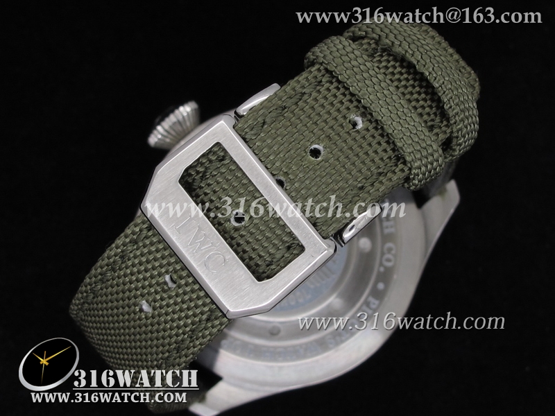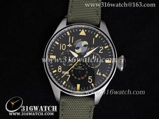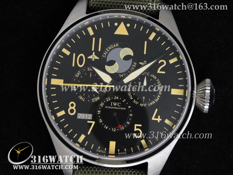 高仿万国IWC 飞行员系列 壮志凌云 万年历男士机械表 黑色表盘 绿色尼龙皮带 IWC0039