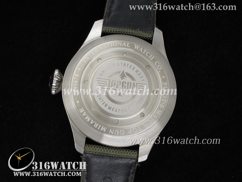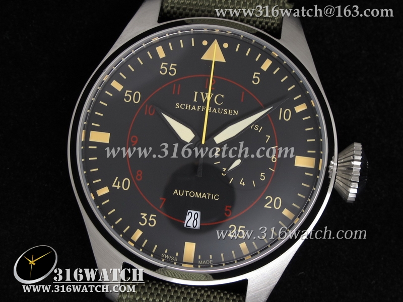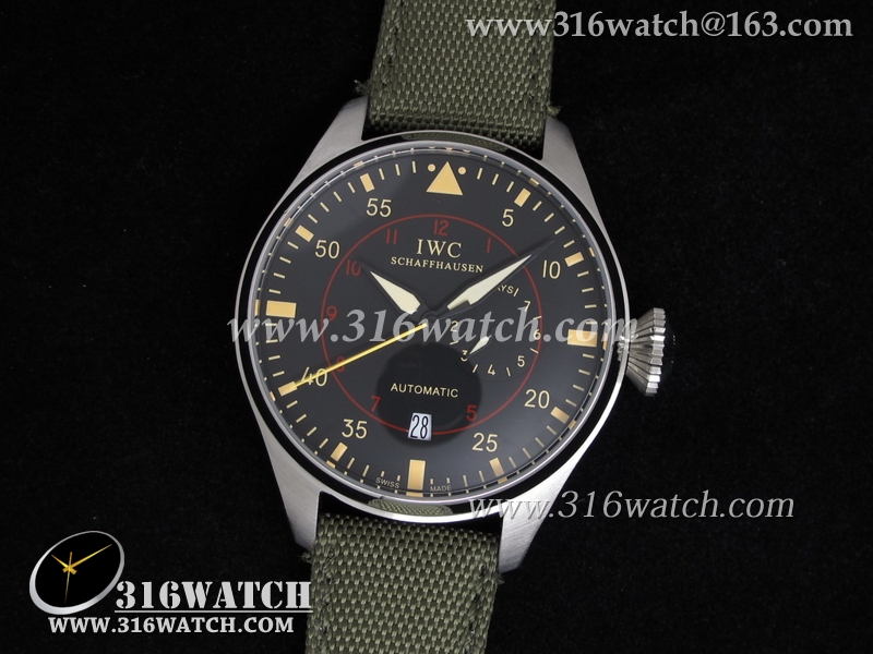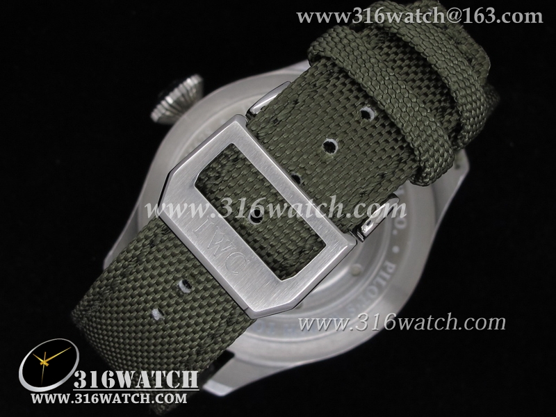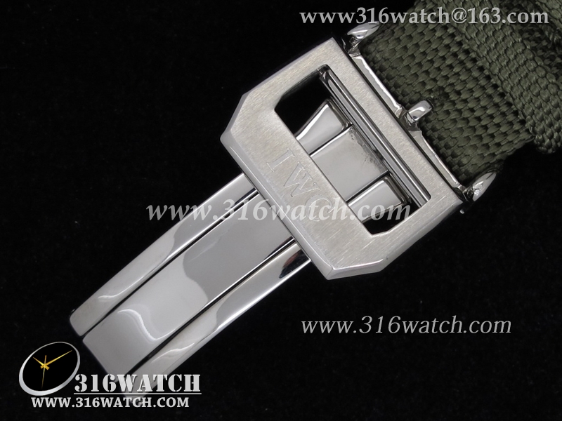 高仿万国IWC 飞行员系列 海军空战 IW388001男士机械表 黑色表盘 绿色尼龙皮带 IWC0036