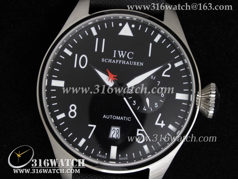 万国IWC-飞行员系列 IW500401男士机械表 黑色表盘 黑色尼龙皮带 高仿万国手表 IWC0035