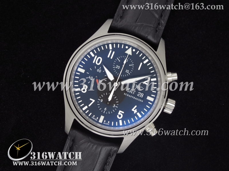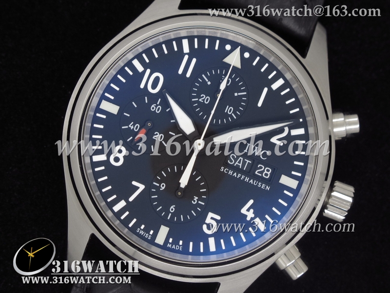 万国IWC-飞行员系列 IW371701 男士机械表 黑色表盘 黑色牛皮带 亚洲7750机芯 高仿万国1:1复制版 IWC0012