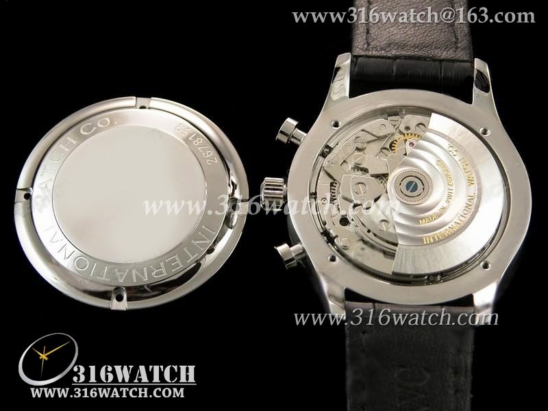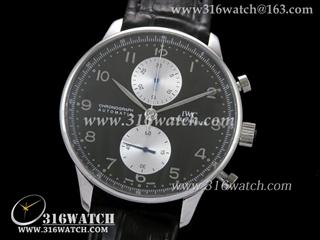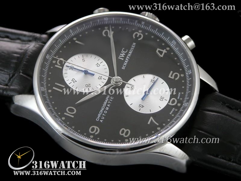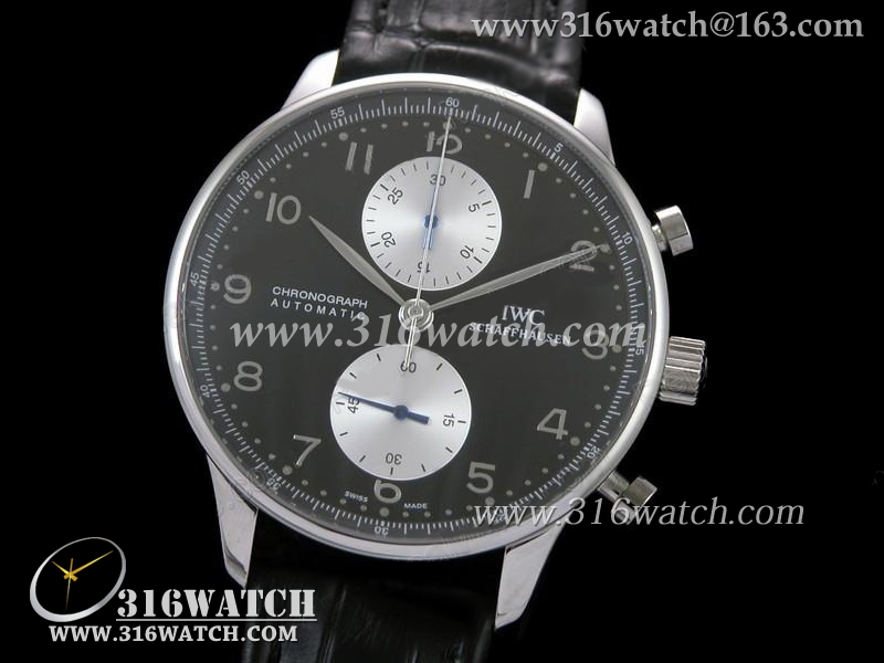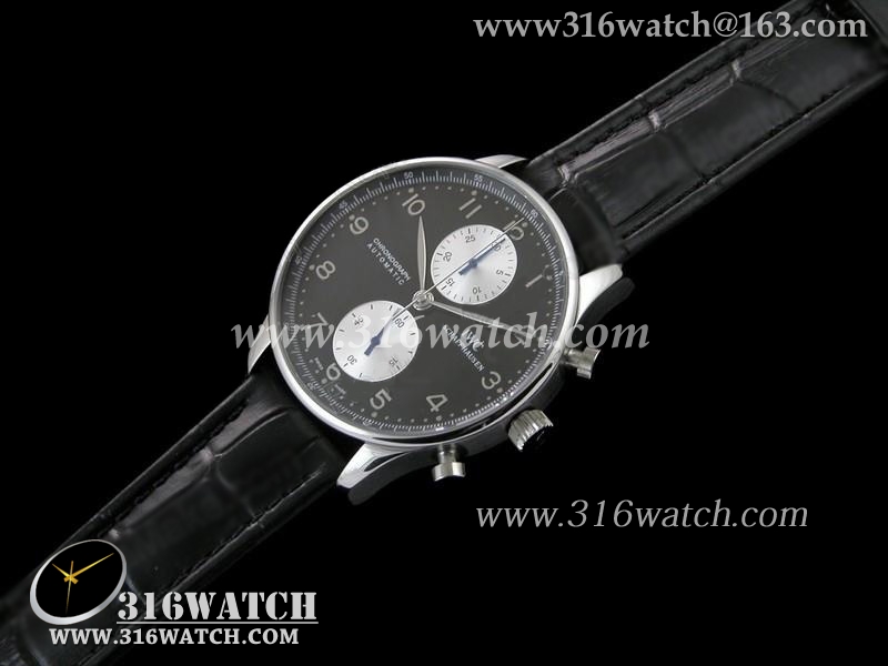 万国IWC-葡萄牙系列 IW371404男士机械表 黑面银字表盘 黑色牛皮带 亚洲7750计时机芯 高仿万国1 :1Noob版 IWC0058