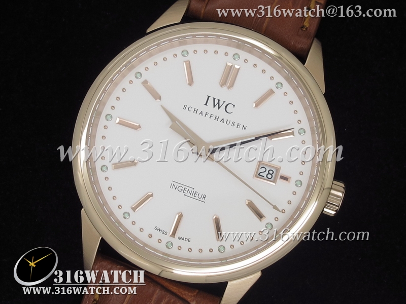 高仿万国IWC手表 工程师系列IW323303 18k玫瑰金镀表壳 白色表盘 棕色皮带 亚洲2824机芯 IWC0013