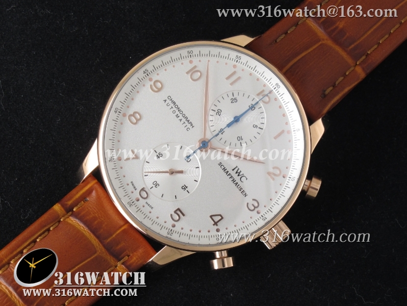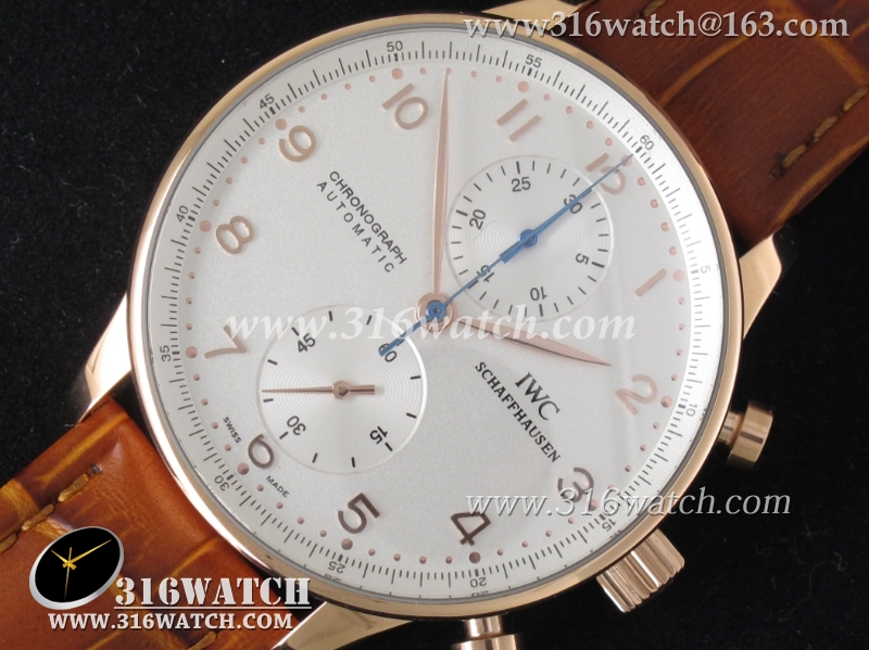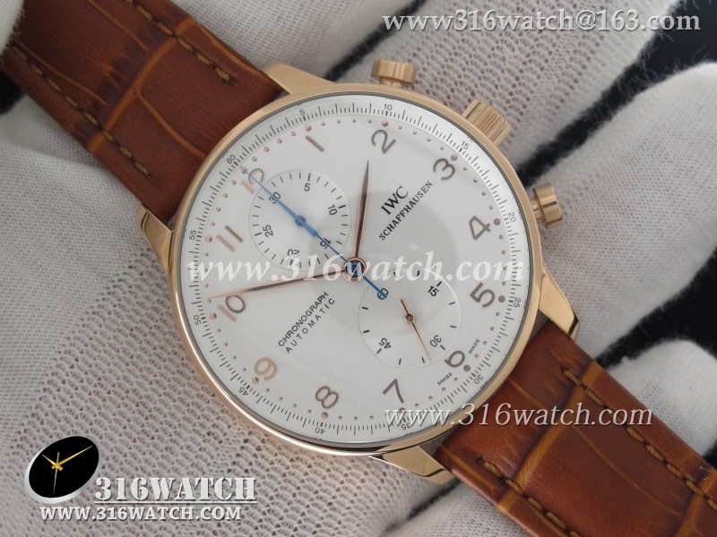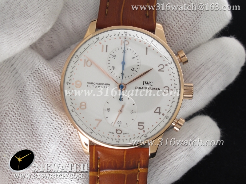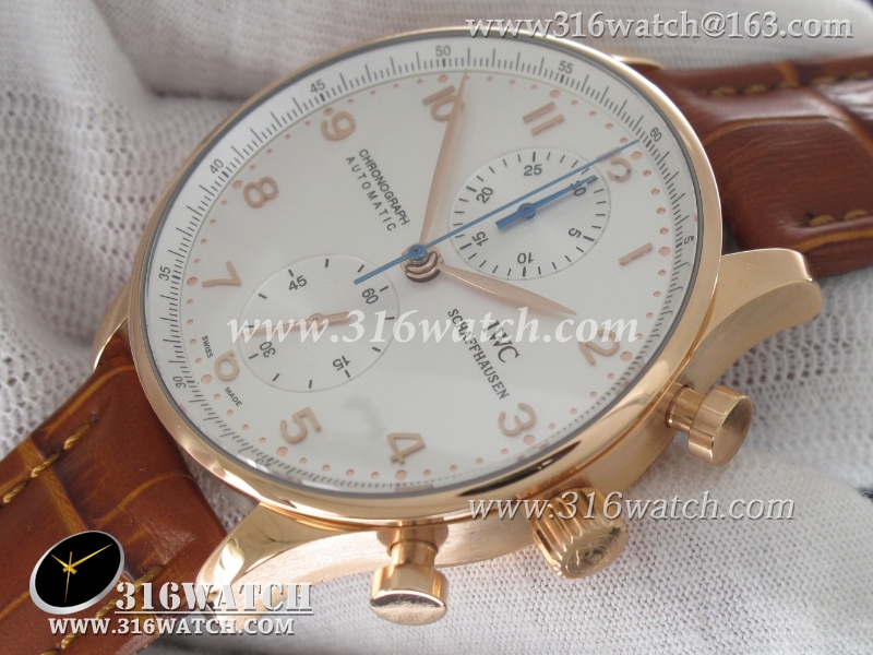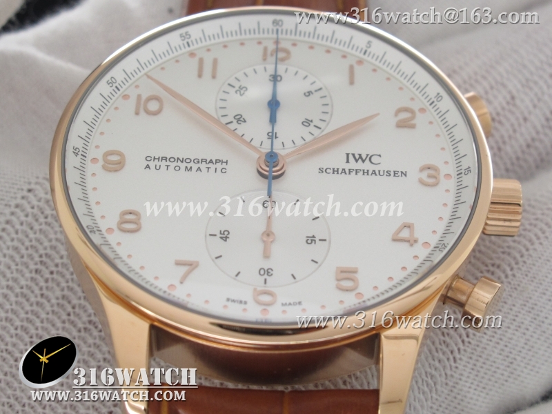 万国IWC-葡萄牙系列 葡萄牙系列 IW371478 机械男表1 :1Noob版最新升级版 18k玫瑰金电镀表壳 白面金字表盘 仿瑞士ETA7750计时机芯 IWC0098