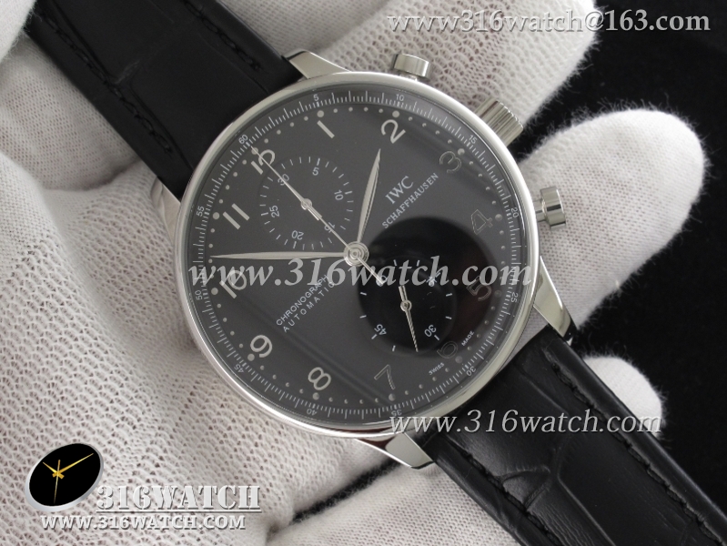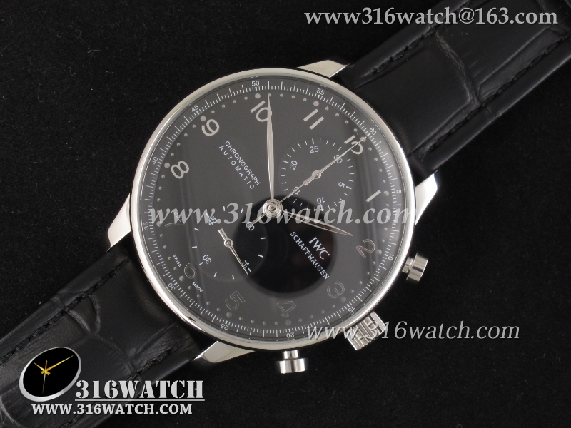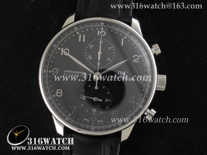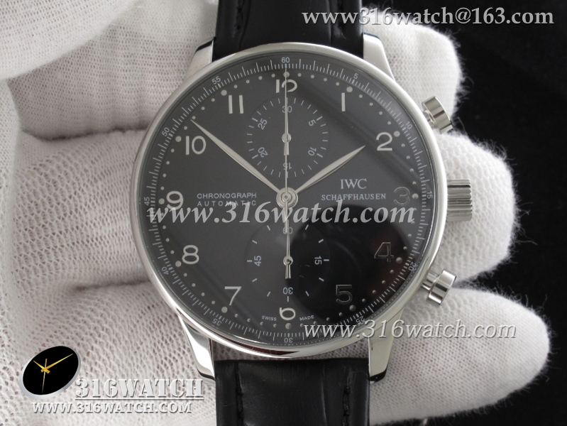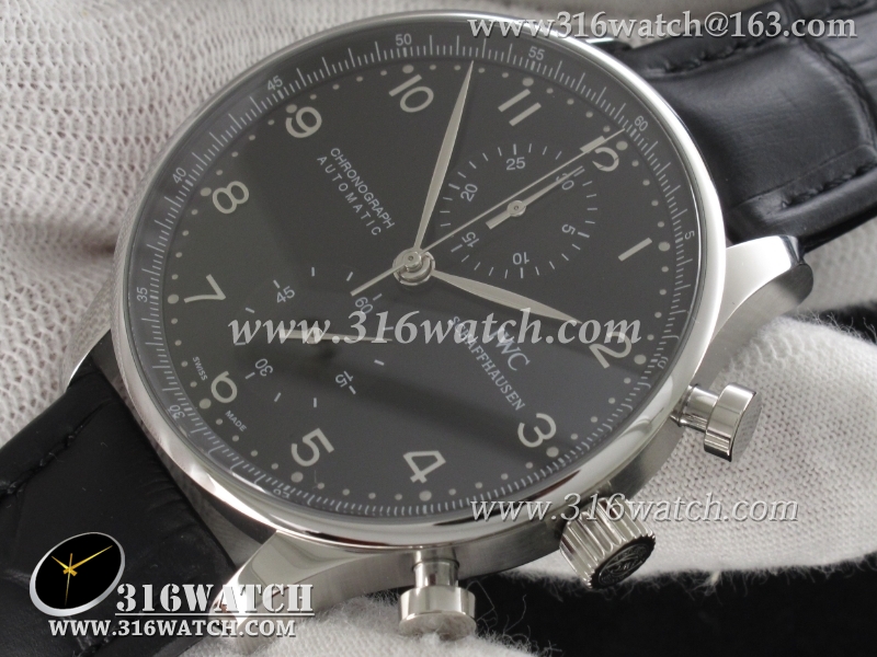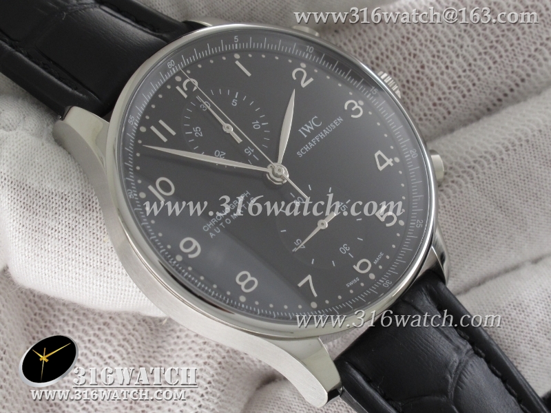 万国IWC-葡萄牙系列IW371447 机械男表 1 :1Noob版最新升级版 黑面银针表盘 黑色牛皮带 仿瑞士ETA7750计时机芯 IWC0097
