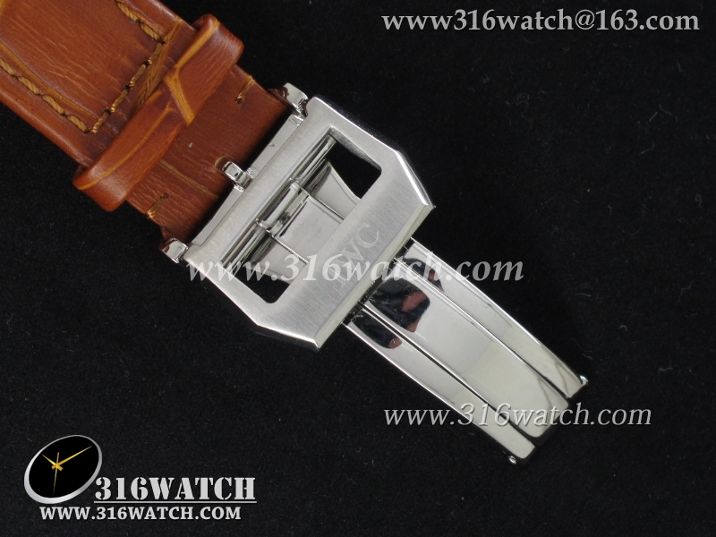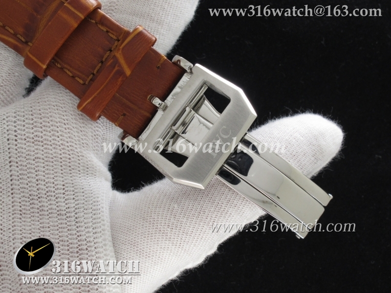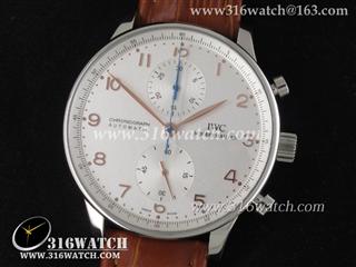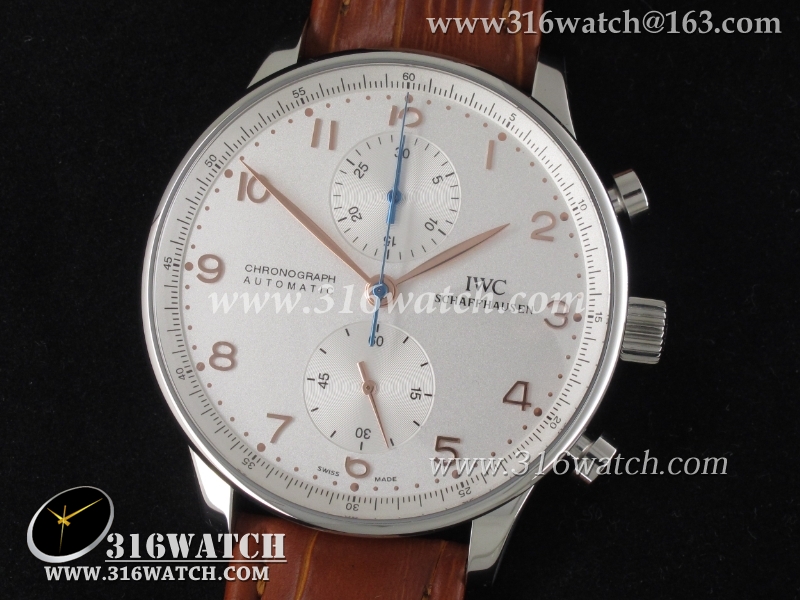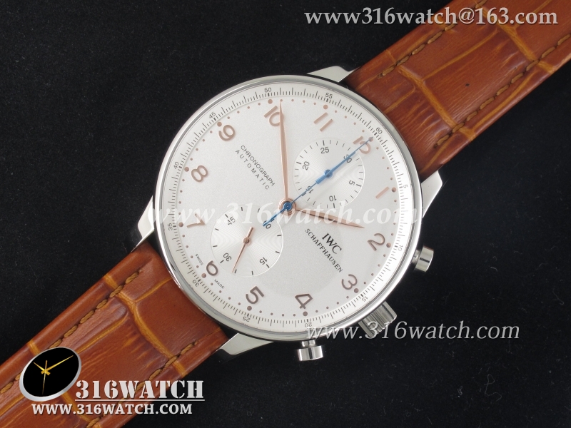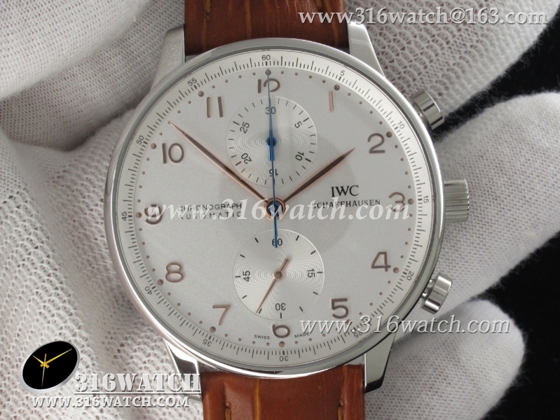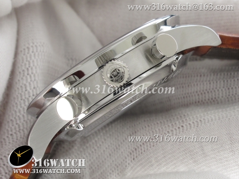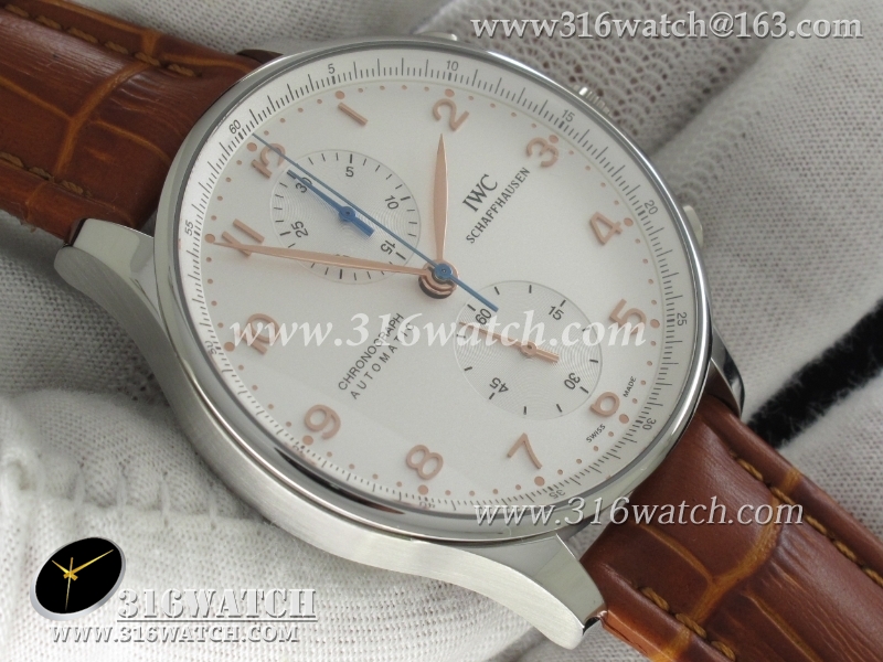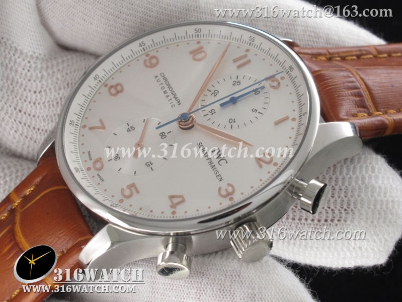 万国IWC-葡萄牙系列 IW371445男士机械表1 :1Noob版最新升级版 白面金字表盘 棕色牛皮带 仿瑞士ETA7750计时机芯 IWC0096
