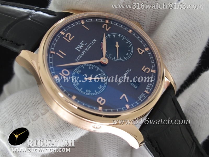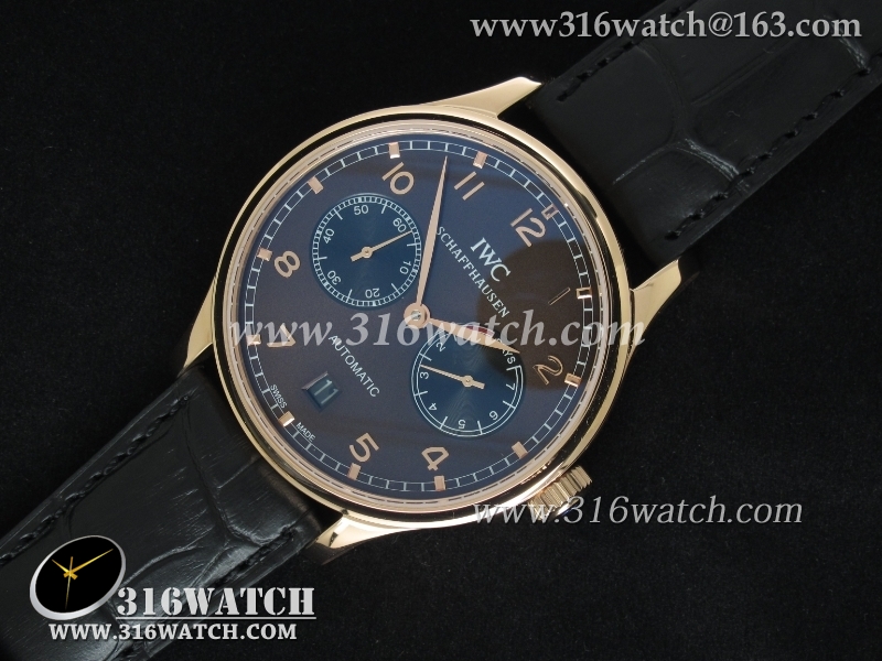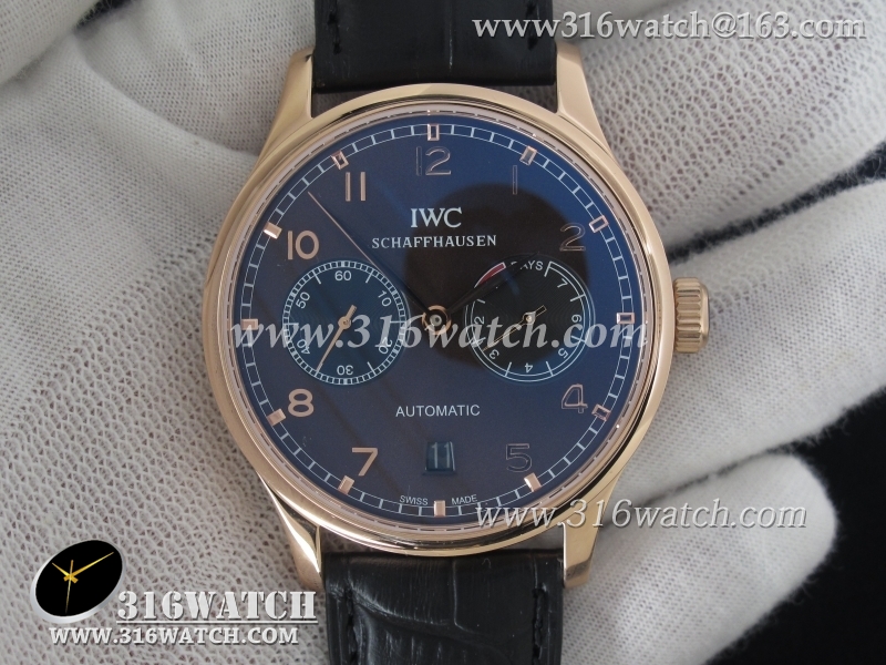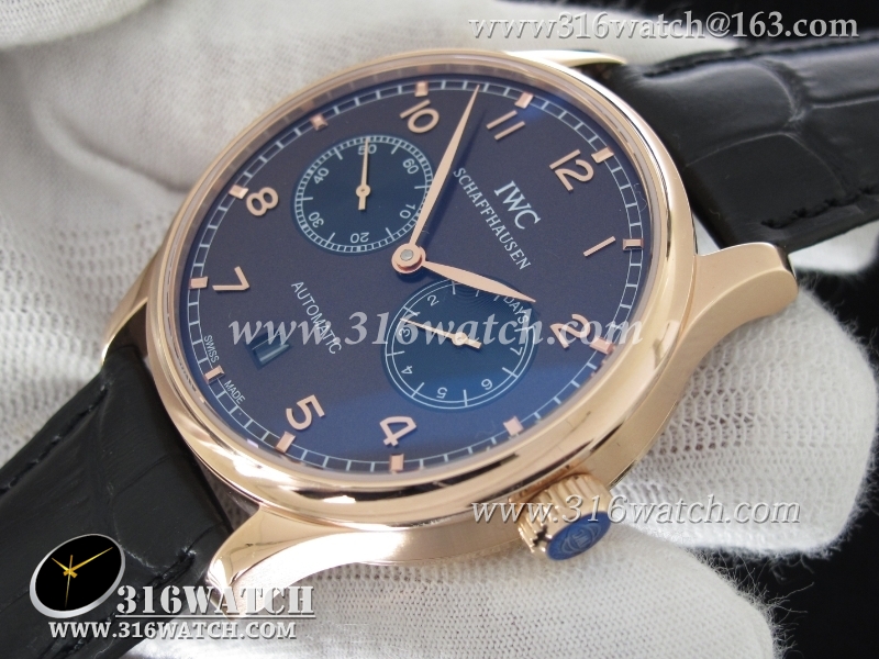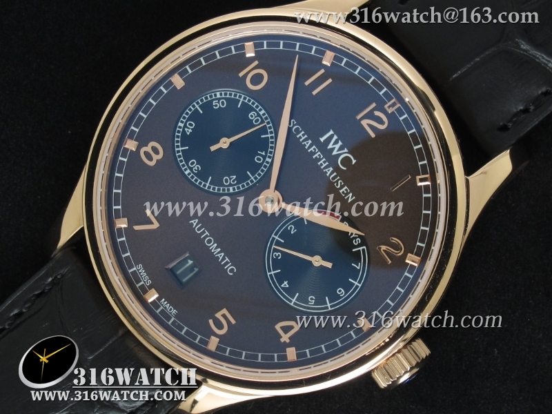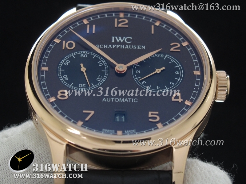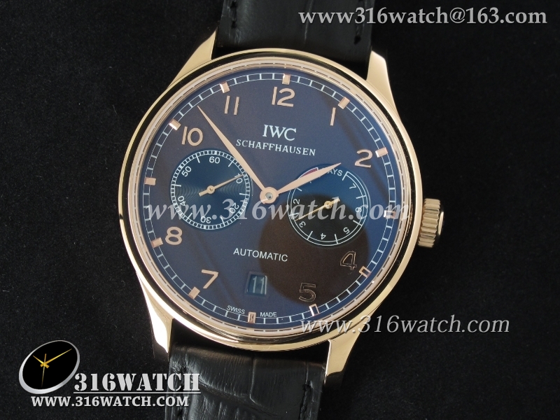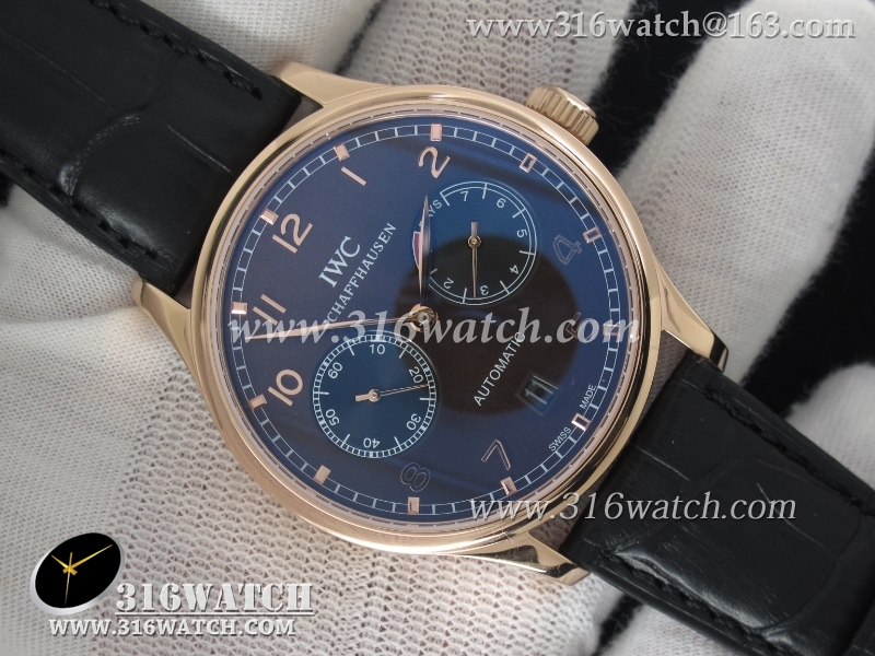万国IWC-葡萄牙系列 7 DAYS 动能显示 男士自动机械表 18k玫瑰金电镀表壳 咖啡色表盘 黑色牛皮带 海鸥全自动机芯 IWC0093
