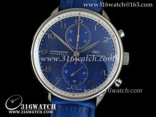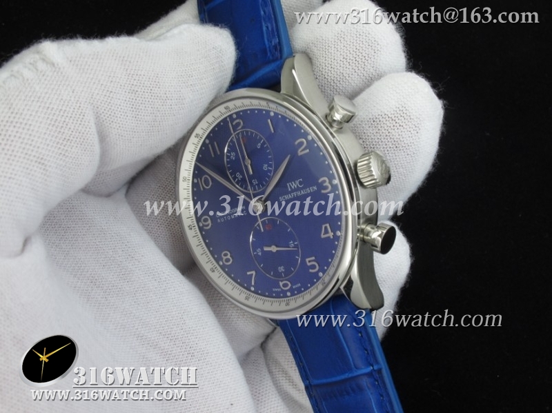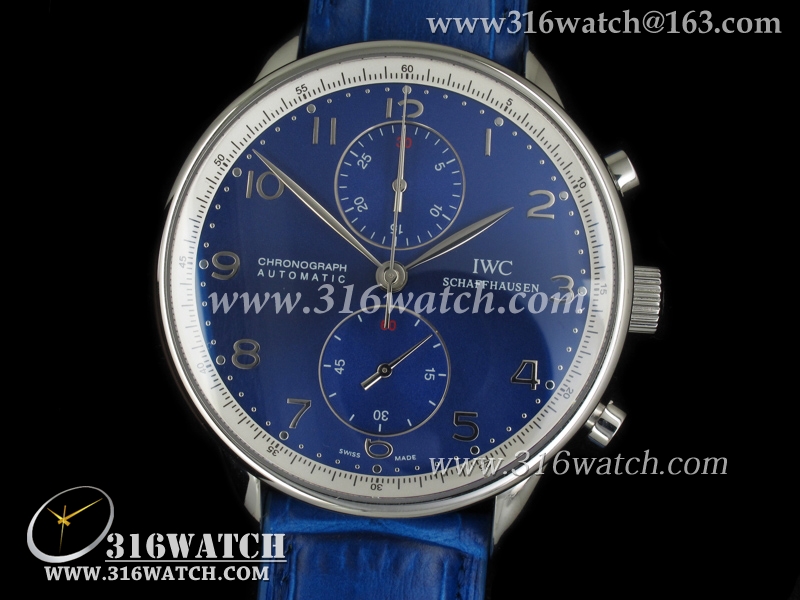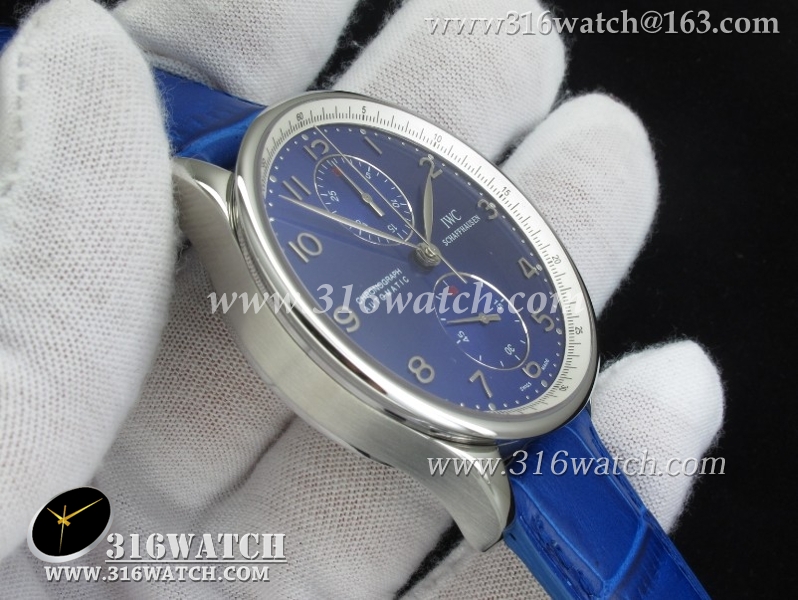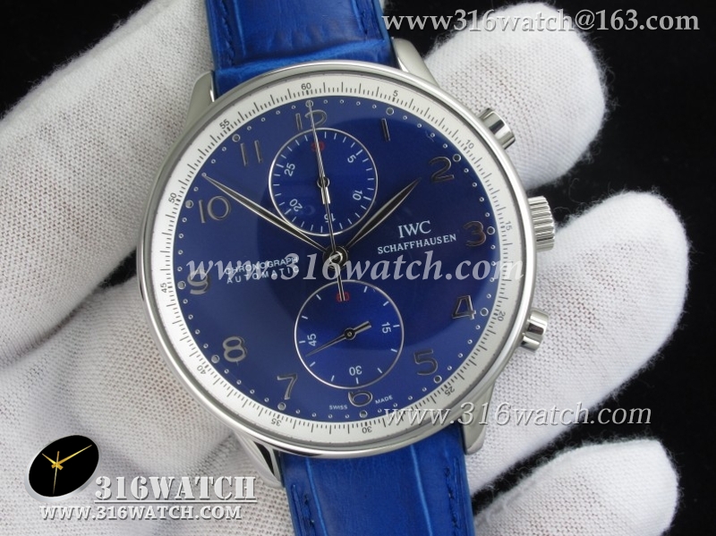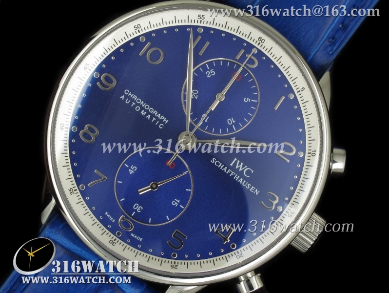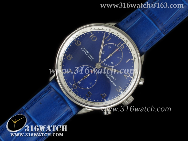 万国IWC-葡萄牙系列 IW371430男士机械表 蓝面银字表盘 蓝色牛皮带 亚洲7750计时机芯 高仿1 :1最新升級版 IWC0084