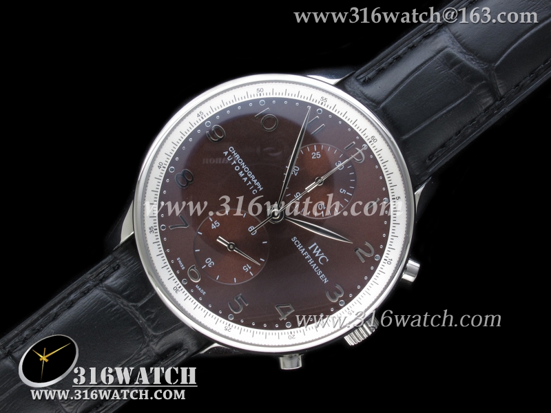 万国IWC-葡萄牙系列 男士机械表 咖啡色表盘 亚洲7750计时机芯 高仿1 :1最新升級版 IWC0082