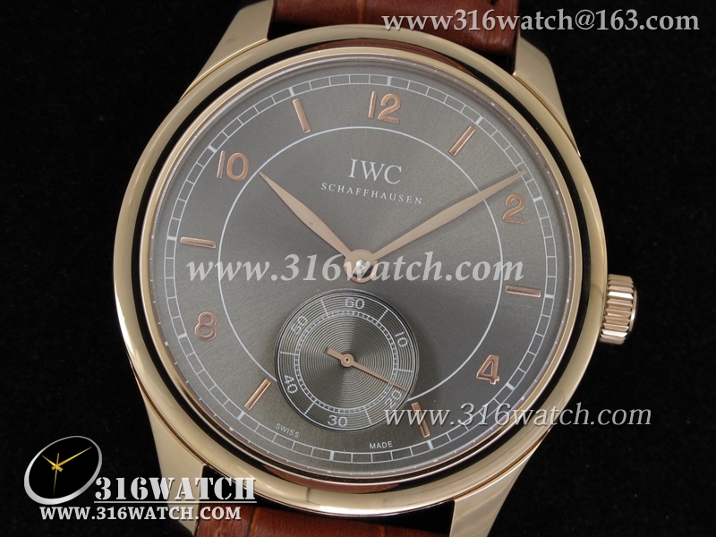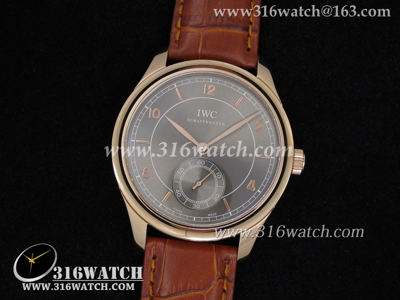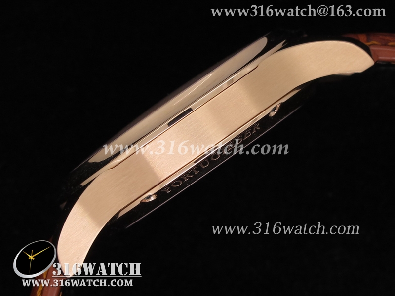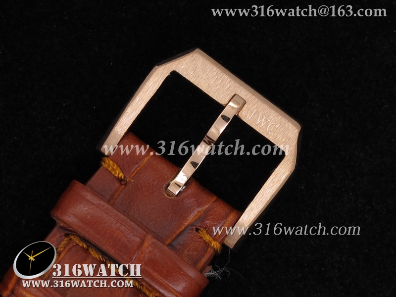 高仿万国IWC-葡萄牙系列 IW545406男士机械表 18K玫瑰镀金表壳 咖啡色表盘 棕色皮带 亚洲2824机芯 IWC0046
