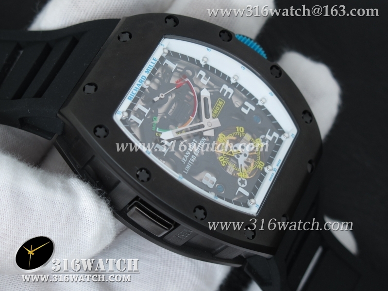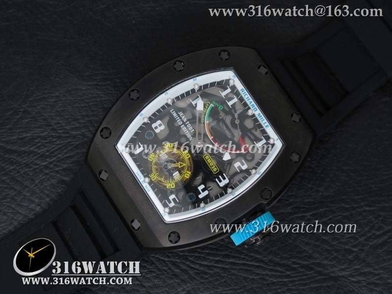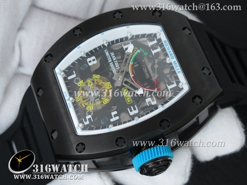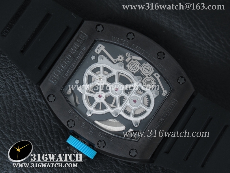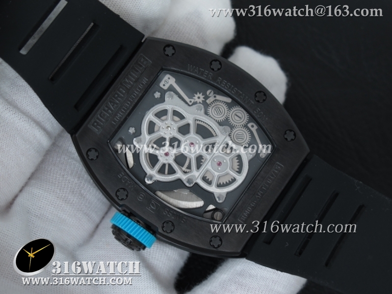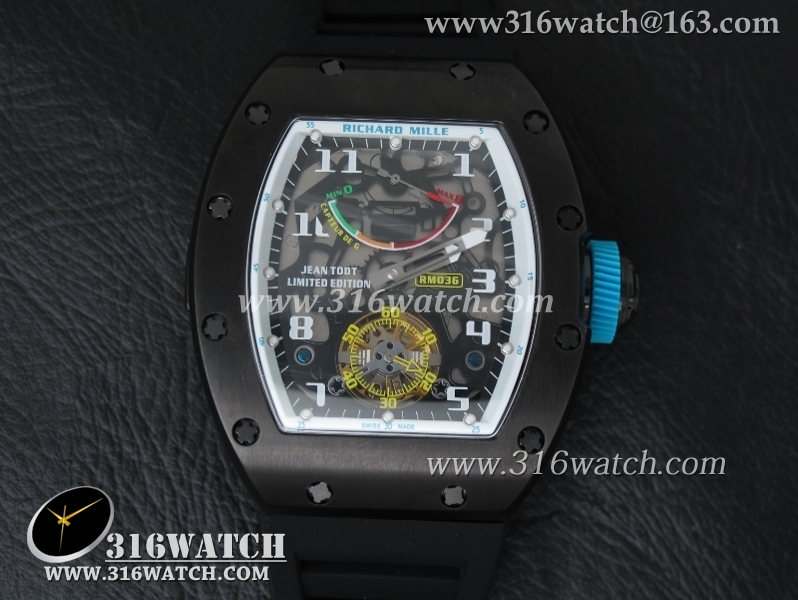 理查德米勒 Richard Mille RM036 黑色PVD表壳 黑色骨架表盘 黑色橡胶表带 A23机芯 RM0003