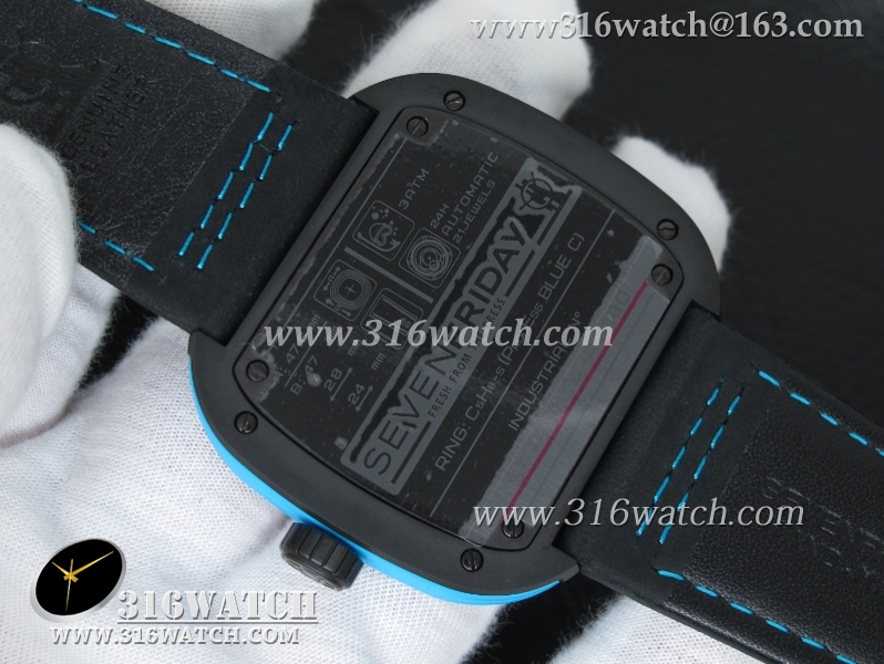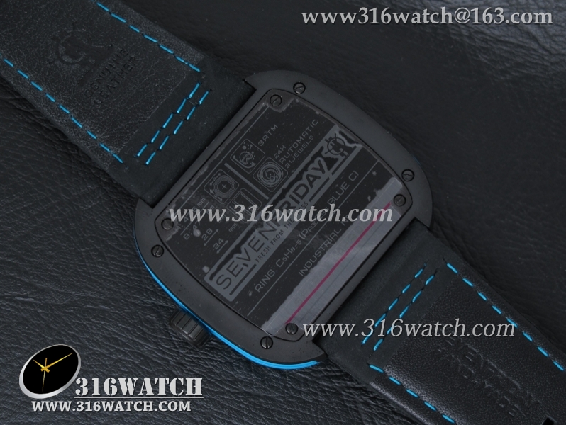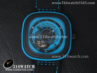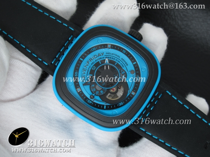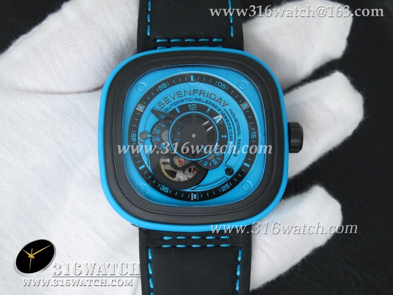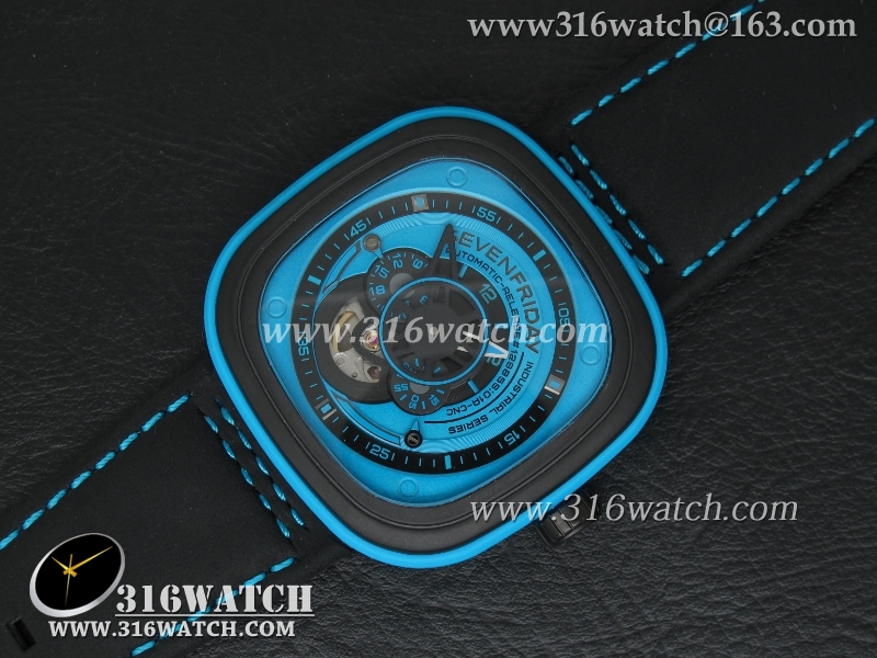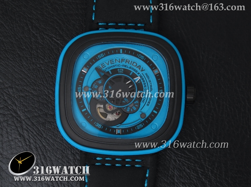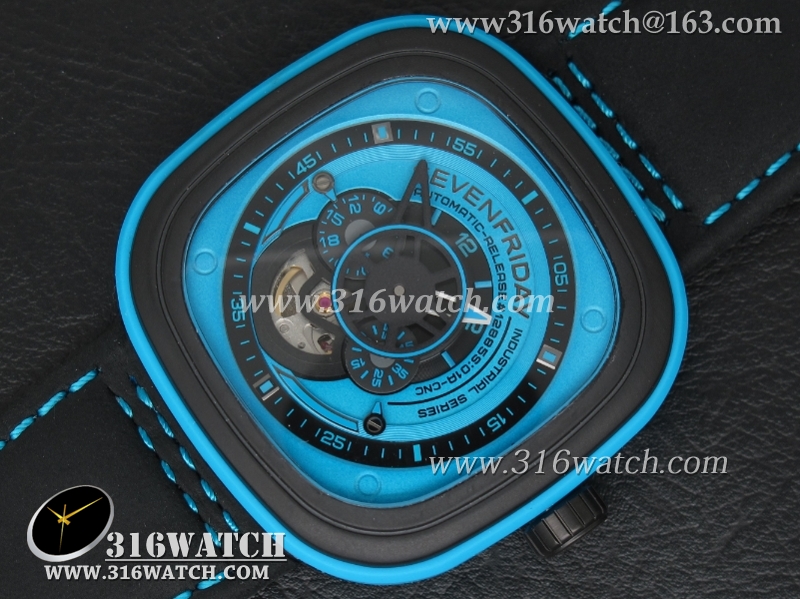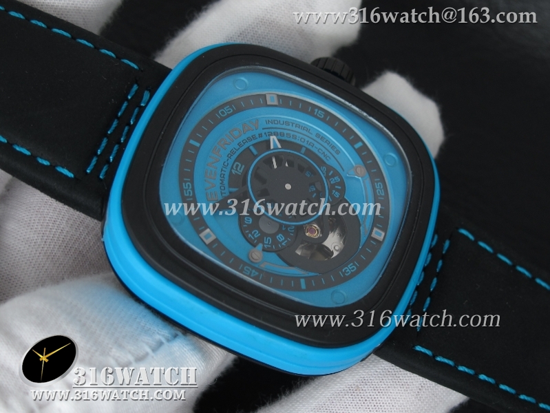 Sevenfriday 手表 蓝色主题 1:1 KW蓝色橡胶表壳 PVD表圈 蓝色表盘 黑色牛皮表带 日本西铁城82S7自动机械机芯 SF004