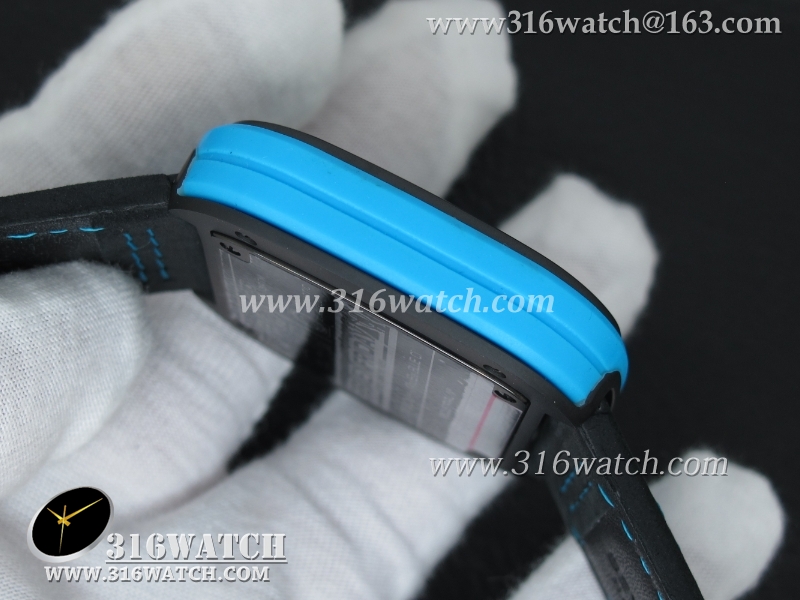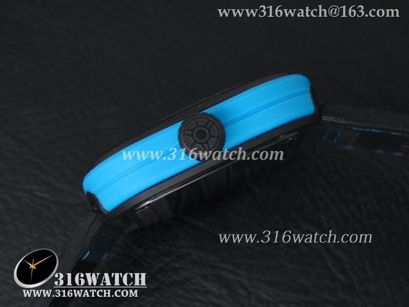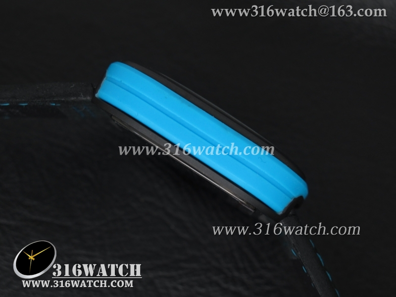 表壳:蓝色橡胶表壳,PVD黑色电镀316L不锈钢表圈
