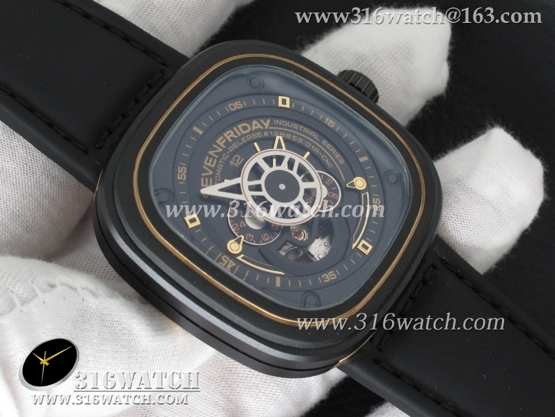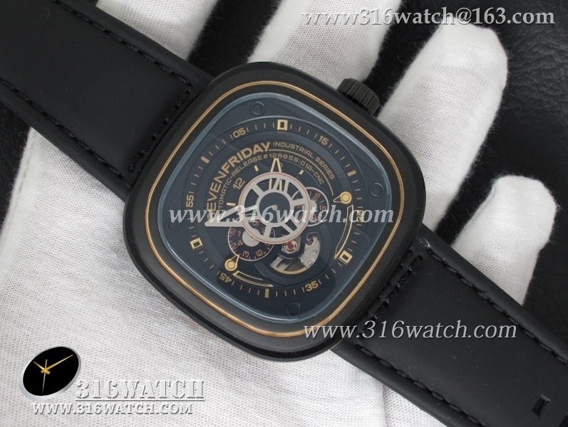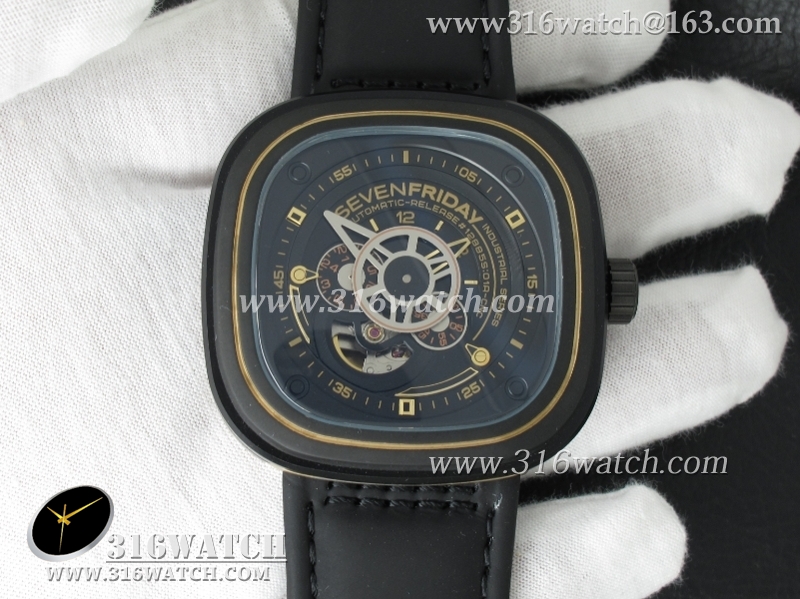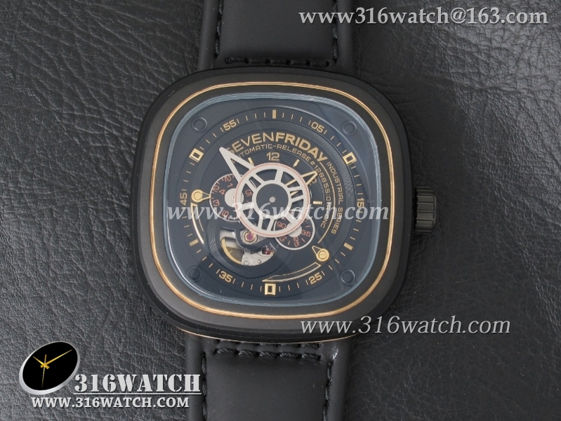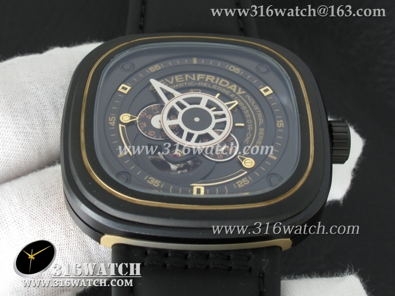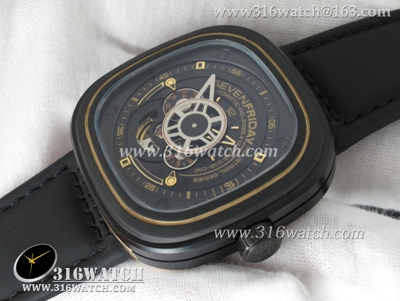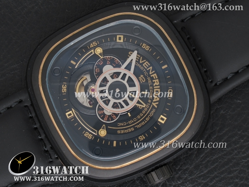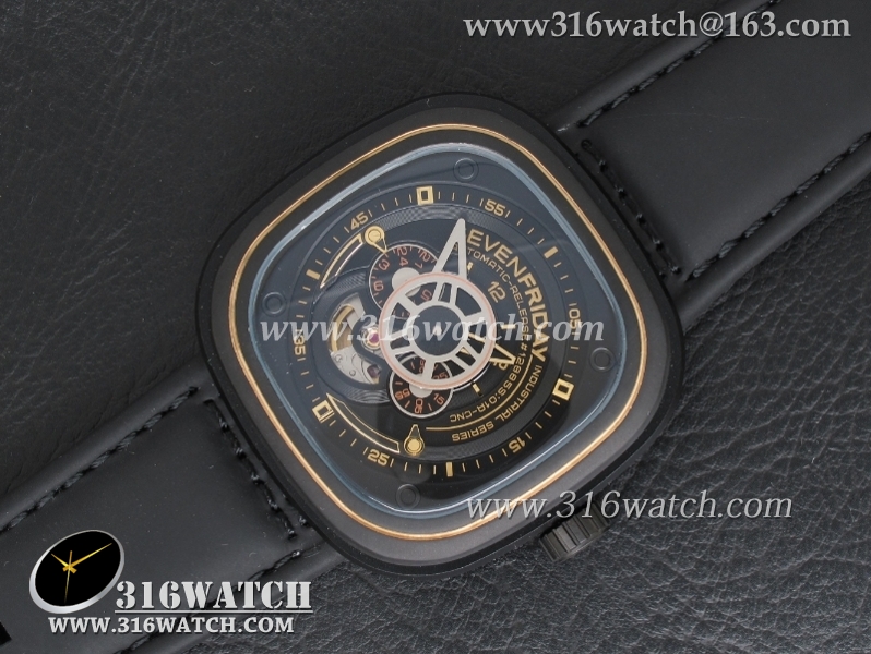 1:1高仿Sevenfriday 手表 PVD电镀不锈钢表壳 黑色表盘 黑色牛皮表带 日本西铁城82S7自动机械机芯 SF002