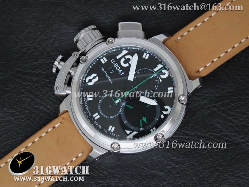 U-BOAT优博 U-51 Chimera限量腕表 46mm 黑色表盘 棕色小皮带 计时A7750机芯 UB0001