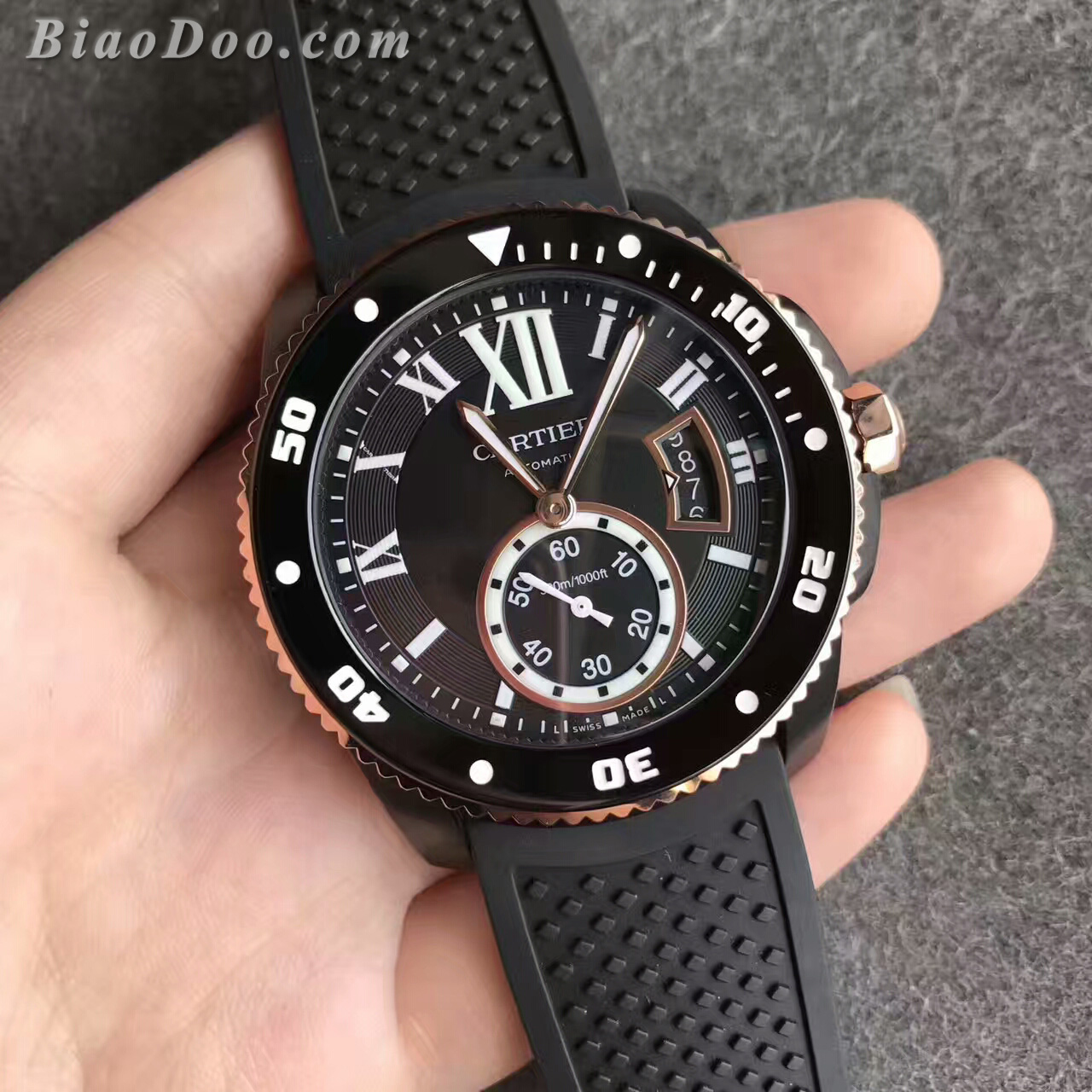【JJ廠】卡地亞(Cartier)卡歷博潛水系列黑殼間金男士壹比壹高仿錶