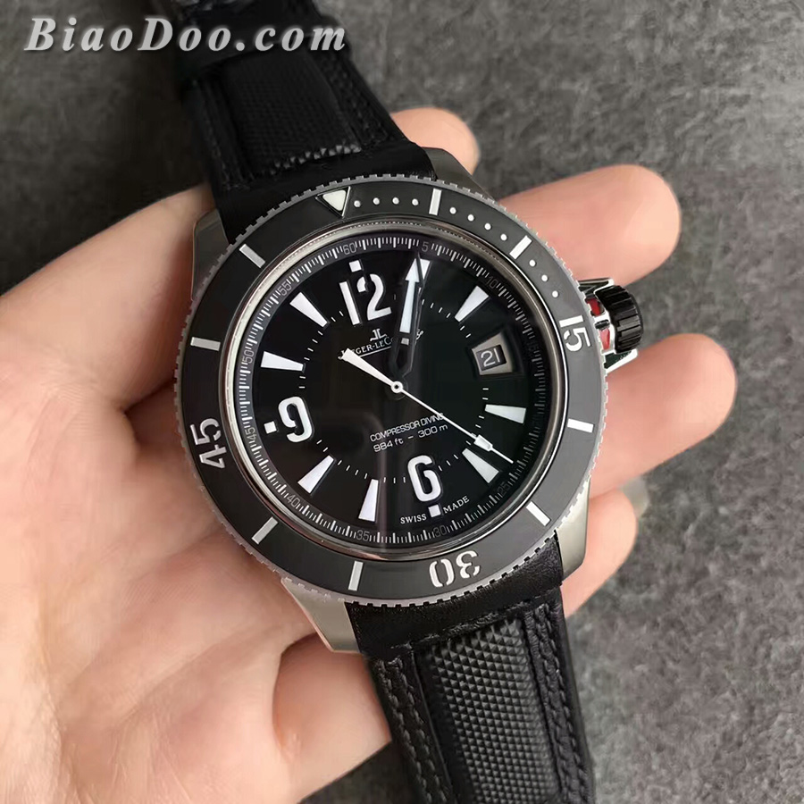N厂经典款,积家压缩大师皮带版复刻手錶,美国海军海报突击队御用錶,手錶直径为42毫米,手錶厚度为13毫米,2824自动机械机芯,316精钢材质錶壳,蓝宝石水晶玻璃镜面,超亮夜光錶盘,陶瓷錶圈,尼龙面材质皮带,针扣錶扣,特殊防水把头设计,红色向上可调时,白色向上即锁把,防水大于100米。
