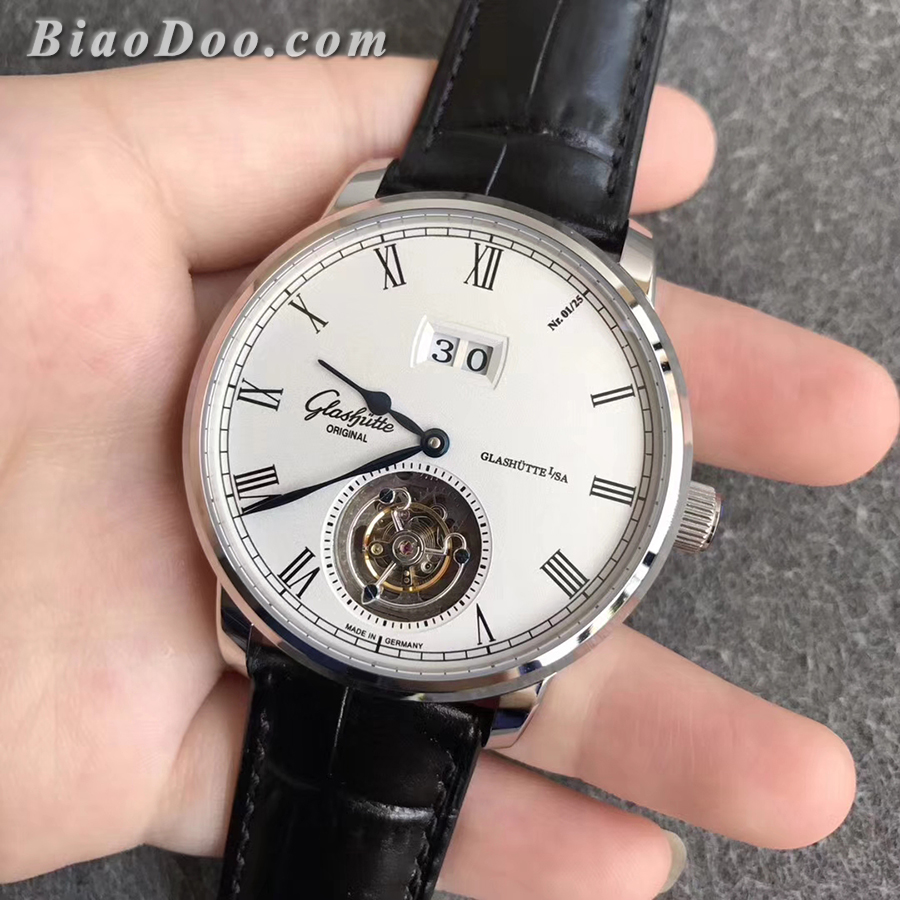 【R8厂出品】R8厂V3版格拉苏蒂原创议员一比一精仿陀飞轮手錶,刻度和陀飞轮造型升级,錶壳直径42毫米,錶壳厚度14毫米,自动陀飞轮机械机芯,316精钢材质錶壳,蓝宝石水晶玻璃镜面,牛皮材质錶带,折叠扣,防水30米。此次版本根据正品最新版本复刻,七点位置罗马刻度改为和正品一致,制錶大师经过无次数测试改造了和正品一样的飞轮。