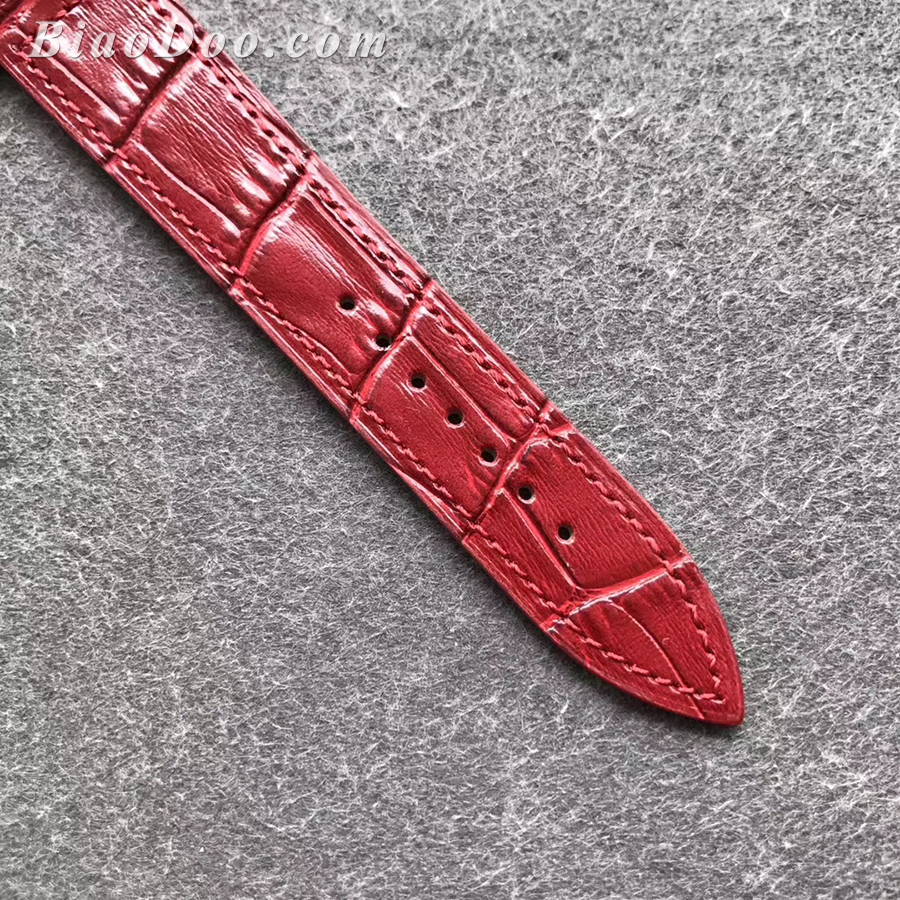 【GF厂出品】法穆兰Franck Muller长岛系列太阳纹面红皮带女士石英精仿手錶,正品一比一开模,錶壳直径26毫米×36.6毫米,手錶厚度7毫米,瑞士朗达石英机芯,和正品完全一致的机芯,316精钢材质錶壳,拱形蓝宝石镜面,牛皮材质錶带,针扣錶扣,防水30米。