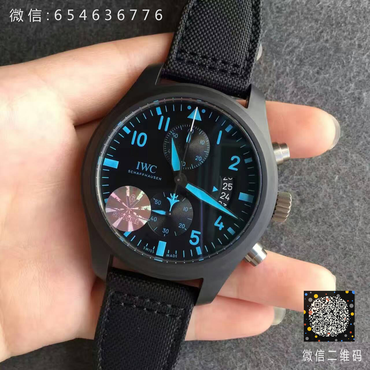【V6厂】万国IWC飞行员系列TOP GUN陶瓷壳蓝丁男士自动机械精仿手錶,上圈改60分计时,直径46毫米,厚度16.5毫米,7750自动机械计时机芯,全陶瓷材质錶壳,蓝宝石水晶玻璃镜面,夜光錶盘指针,尼龙錶带,折叠扣,防水50米。