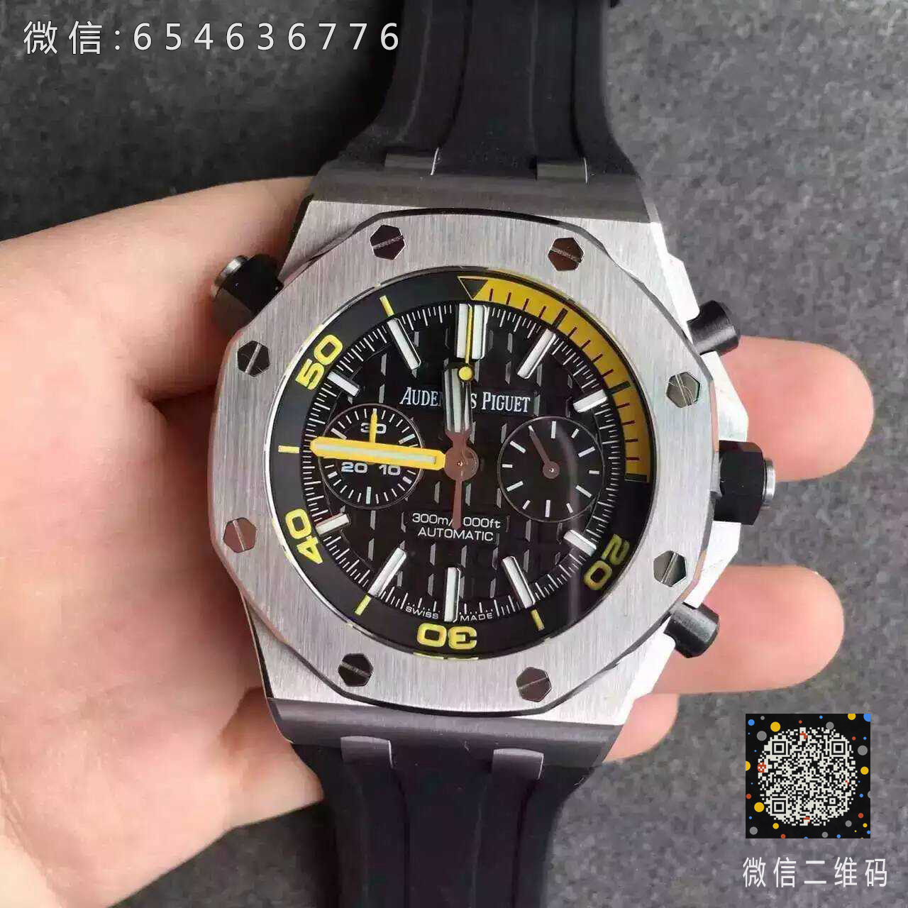 2016爱彼官方火热新款,夏日炫酷款,爱彼AP皇家橡树离岸型系列26703黑面,直径42毫米,厚度14毫米,7750改3124自动机械机芯,316精钢材质錶壳,蓝宝石水晶玻璃镜面,夜光指针和刻度,胶带,针扣,防水100米。