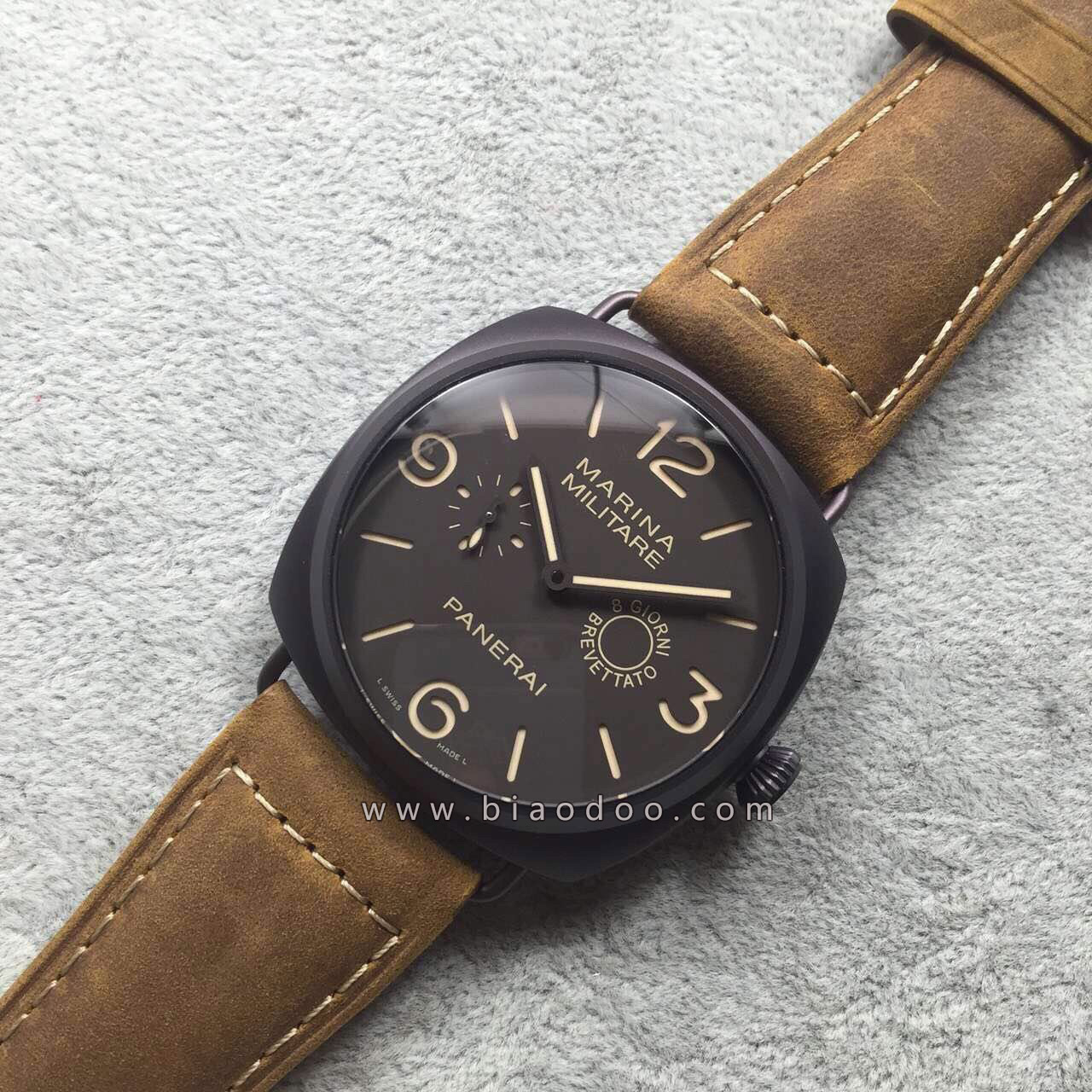 沛纳海Luminor系列PAM00339/PAM339男士手动机械精仿手錶,手动机械机芯,机芯厚6.6毫米,錶径47毫米,錶壳厚度8毫米,铝陶瓷化錶壳,牛皮錶带,不透底。